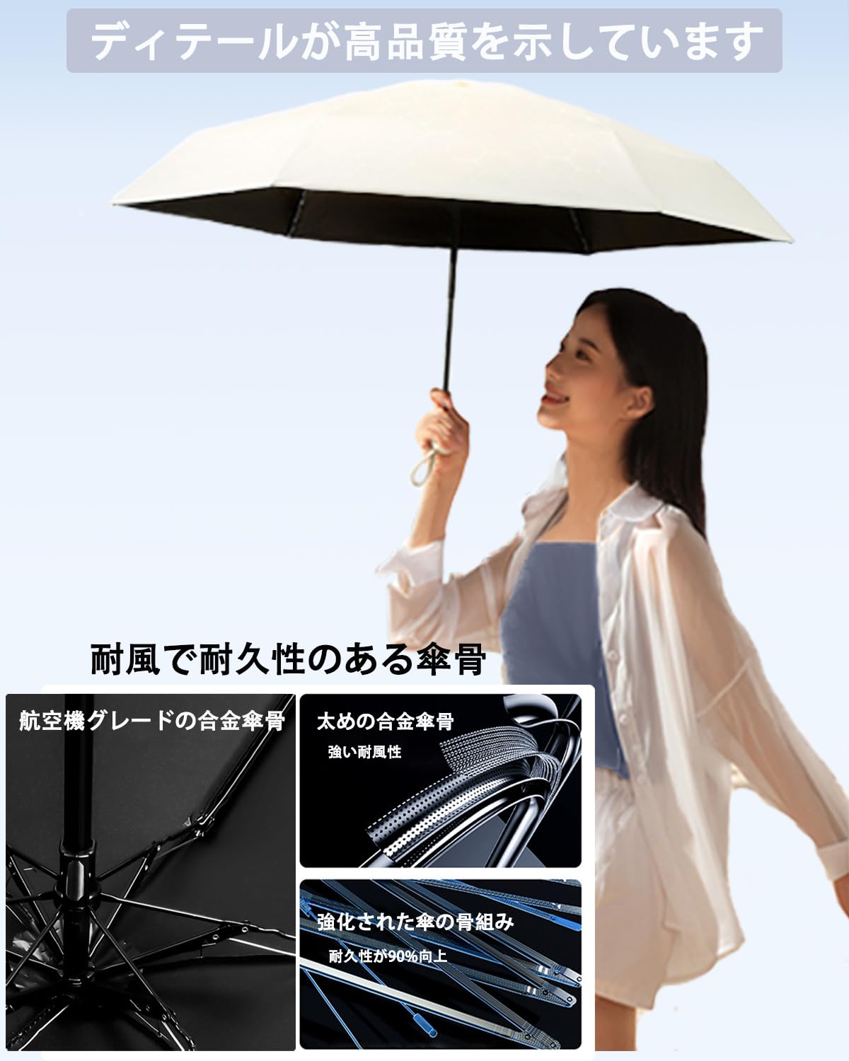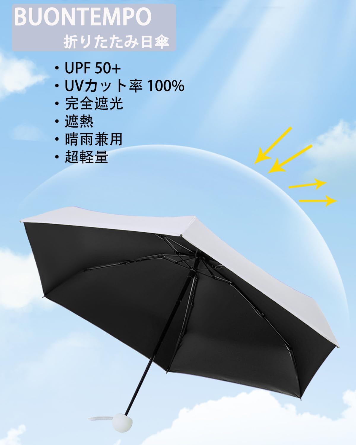 【UVカット率99.9%&完全遮光】高品質、断熱性に優れています。 280T高密度の傘生地は、日焼け防止のための二層ブラックナノ日焼け止め素材コーティングを組み合わせており、UPF 50+、紫外線を99.9%以上ブロックし、100%完全遮光、光透過率0で、太陽の下でも涼しく保ち、効果的に保護します。あなたの肌。 真夏の強い日差しを遮り、日差しや紫外線から大切なお肌を守り、日焼け防止、熱中症予防、猛暑を乗り切る日焼け止めとしても使えます。