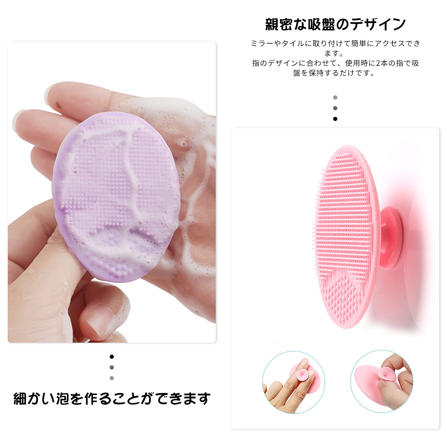【お肌のケアにとても適しています】両手で洗顔するのは効果的で徹底的ではありません。私達のシリカゲルを使って角質クリームを取りやすいです。化粧品の残存物を取り除き、毛穴をよくして、しみを減らして、黒頭を取り除き、健康で、光のある肌を作ります。