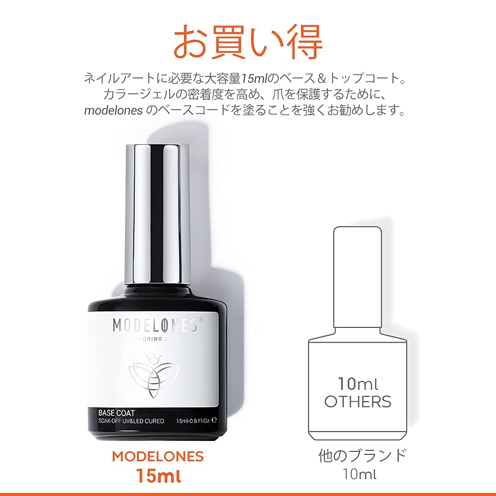 Modelones ベースコート&トップコート セット 15ml大容量 ジェルネイル UV LED対応 ネイルジェル カラージェルネイル 用 ンワイプ 拭き取り不要 大容量 トップジェル