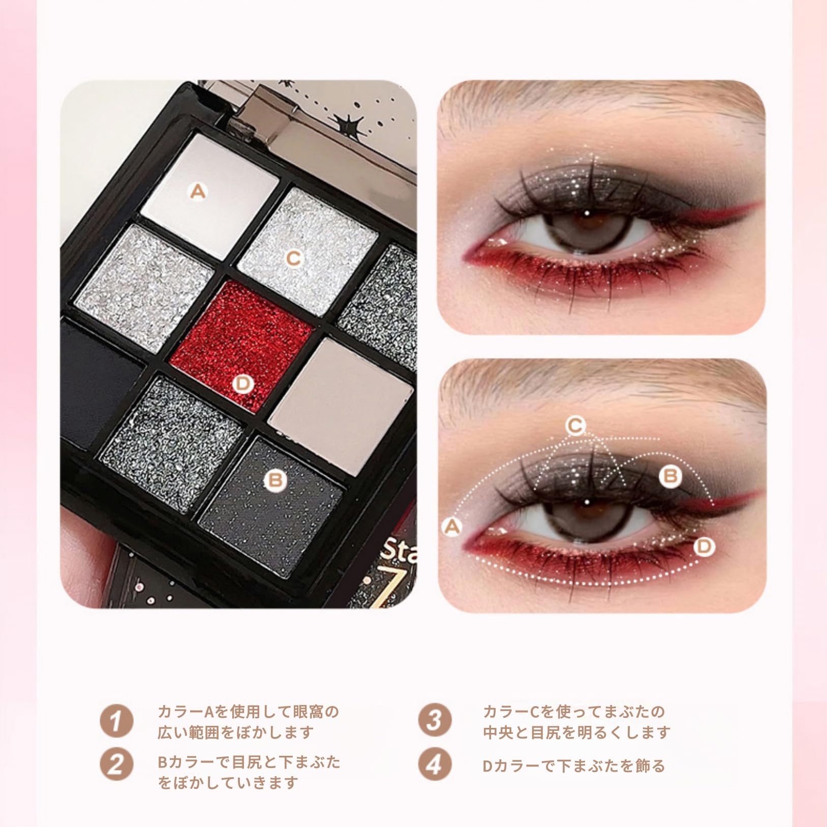 【9色アイシャドウパレット】9色アイシャドウパレット:マットな質感とパール感のある質感を組み合わせた、クラシックで温かみのある9色のアイシャドウパレットは、ファッションからデイリーアイテムまで使いやすいです。