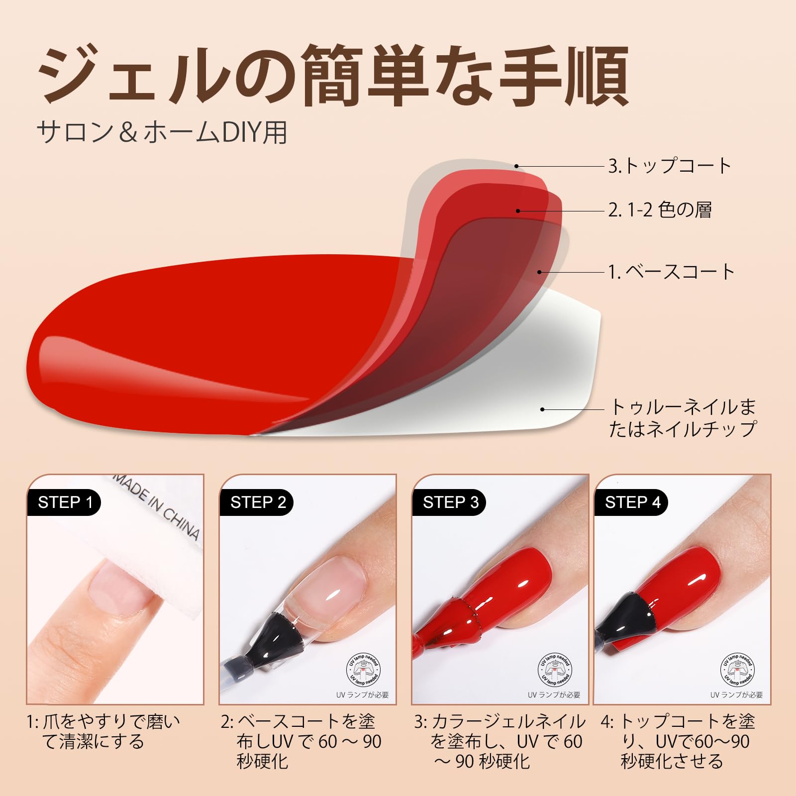 人気のポリッシュタイプ!ジェルネイル初心者でも使いやすい平筆付き。21日以上持続します。 LED ライトの下で 60 〜 90 秒間硬化する必要があります。カラージェルとの相性も良く、よりジェルネイルの性能を引き出すアイテムです。ご自宅でもネイルサロンでも気軽にお楽しみいただけます。