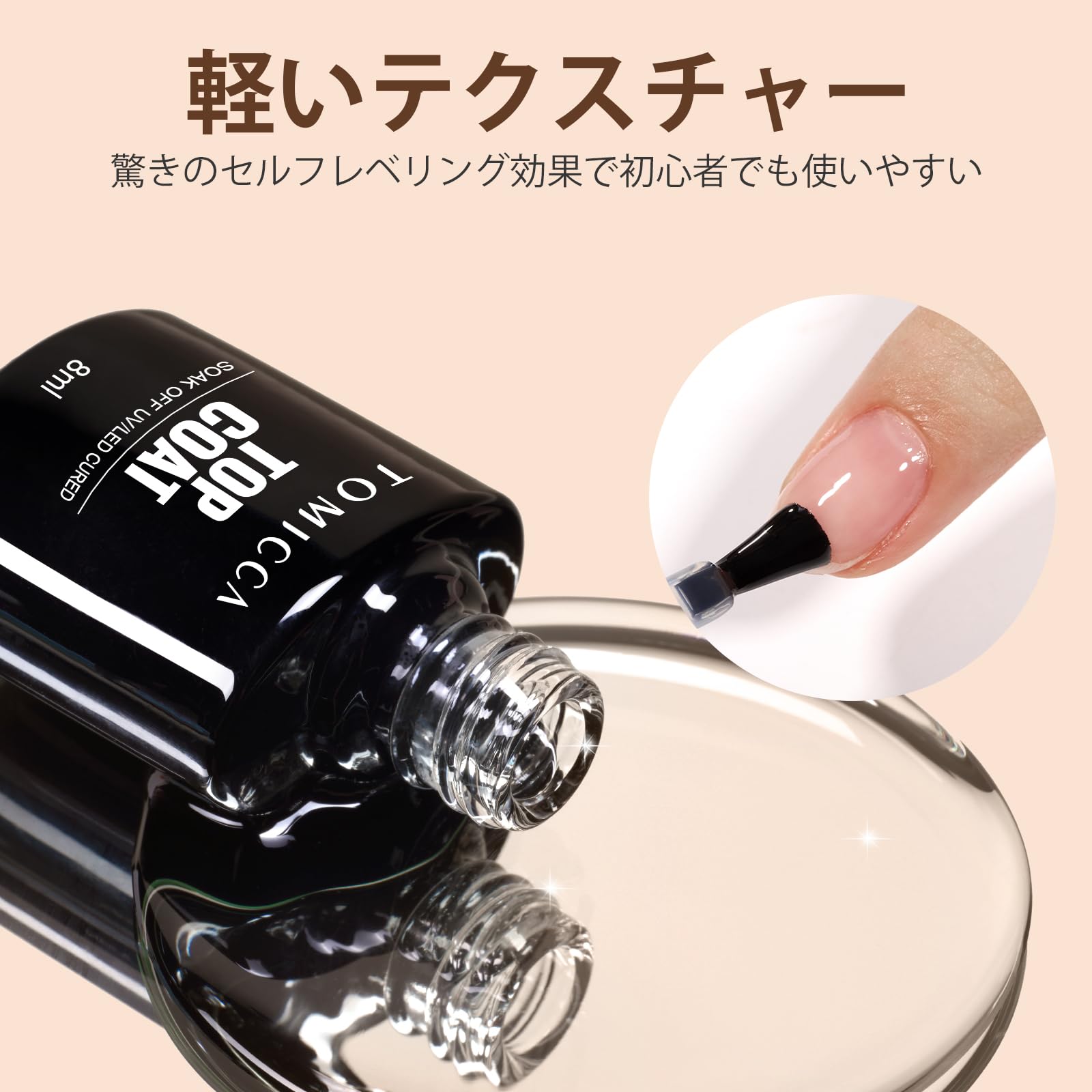 TOMICCA ジェルネイル トップコート 8ml 拭き取り不要 クリアジェルネイル 高光沢ポリッシュトップコート 簡単UV/LED対応