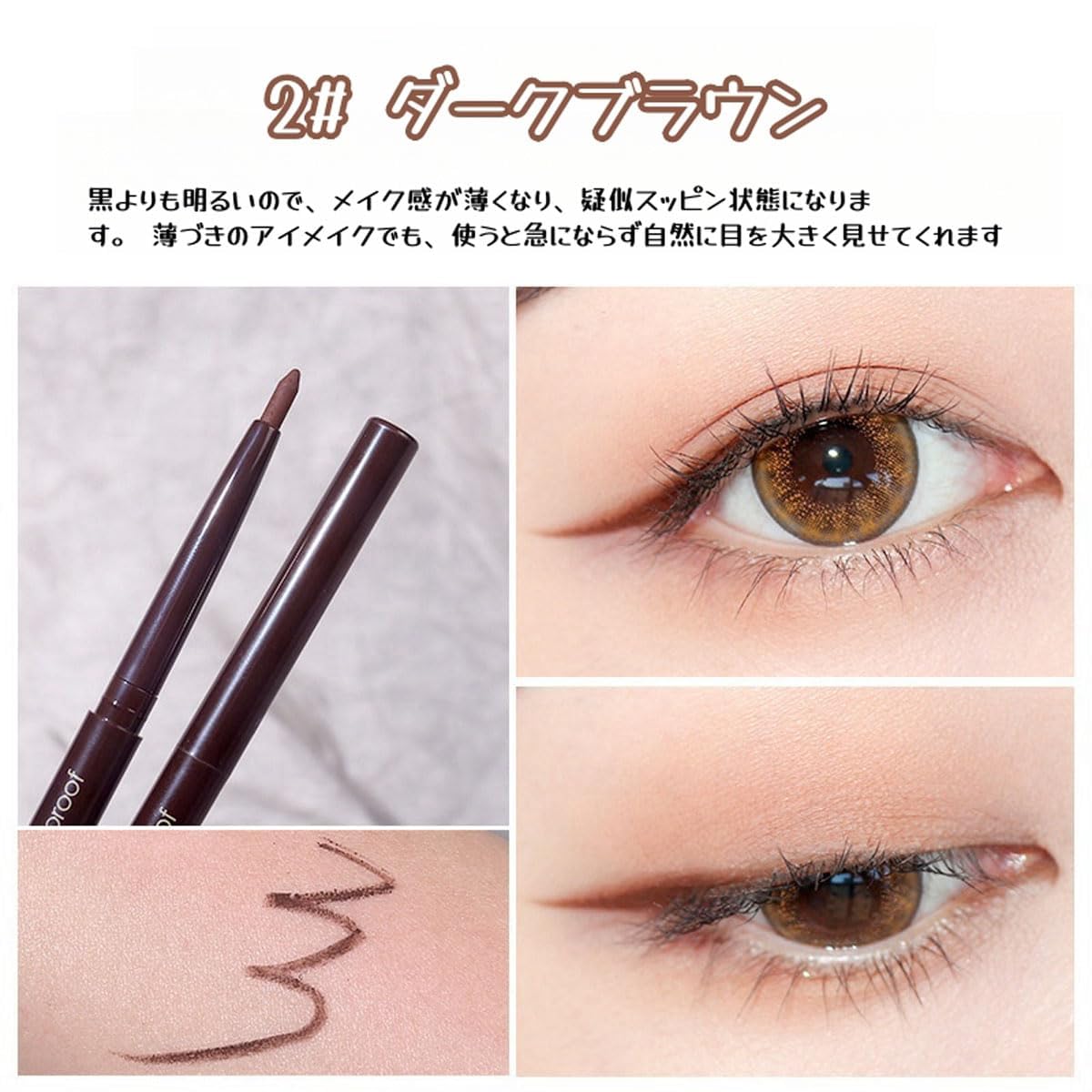 【防水・長持ち】速乾・マルチプロテクション・汗・皮脂・涙にじみにくい! 防水性に優れ、雨に濡れても拭いても汚れにくい! にじみにくくウォータープルーフのアイライナー。 パワフルな持続力で美しい目元が一日中持続! 明るい色が目元を明るくしてくれます。 自然な明るい印象。 分解が簡単で素早く分解できます。