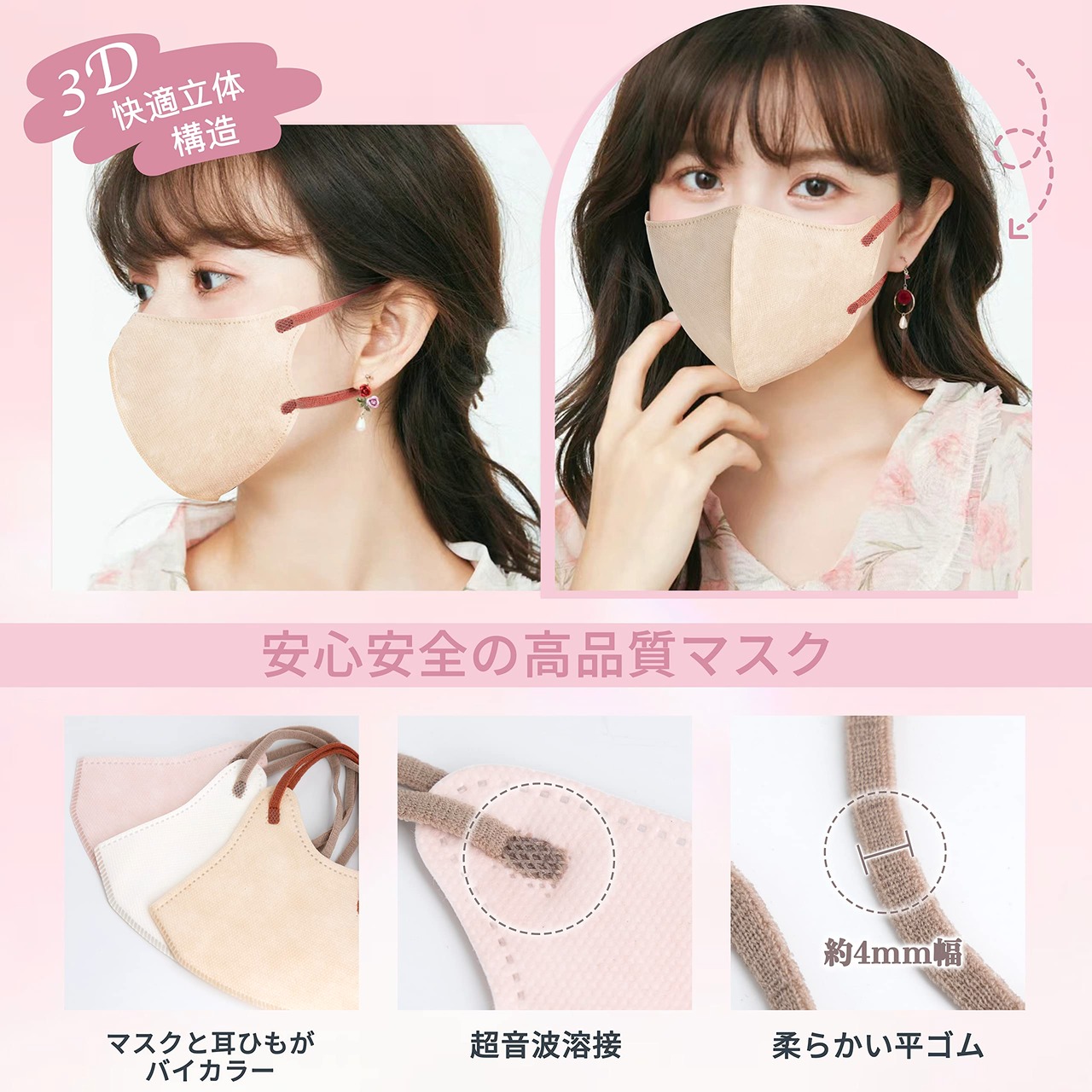 【3d小顔立体マスク】人体工学に基づいた3D立体構造設計で、「リップが付きにくい」「呼吸がしやすい」「小顔効果がある」と大好評いただいているおしゃれマスクです。最上級のES繊維素材を使用して、BFE・VFE・PFE 99%以上です