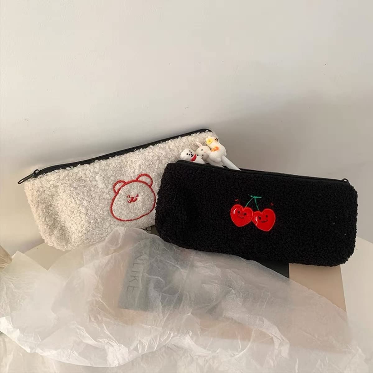 SAKUSHOぬいぐるみペンケース ツールペンケース ジップーペンケース ふわふわ 多機能 大容量 筆箱 おしゃれ シンプル 可愛い 韓国 ペンケース ペンポーチ 塩の女の子 人気 ins映え 中小学生 高校生 大学生 子供 自立 スリム 多図案 (黑①)