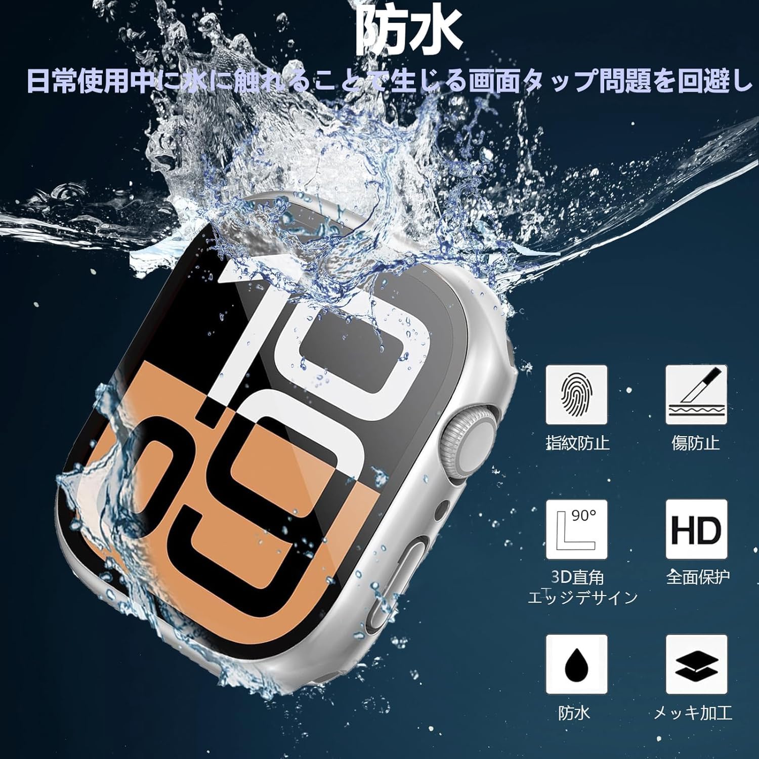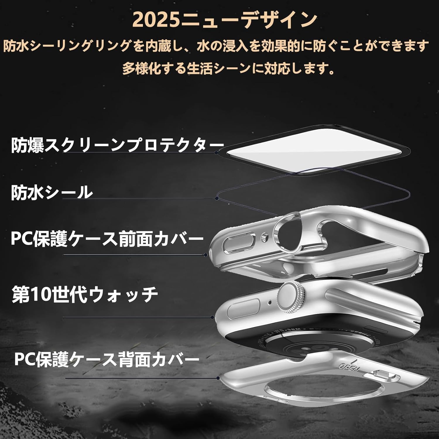 ?【360ど度 防水設計】:アップルウォッチ 10 カバーの防水機能は全面的にアップグレードされました。新型保護ケースでは、スクリーンの強化ガラスフィルムの下部に防水ソフトラバーシーリングリングが内蔵されており、水がガラスフィルムと本体の間に入るのを効果的に防ぎ、日常使用中に水に触れることで生じる画面タップ問題を回避し、日常のスポーツや水上活動に最適です。