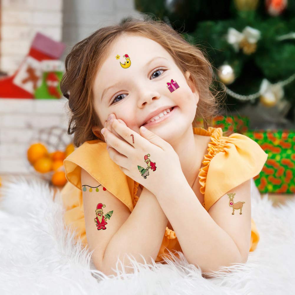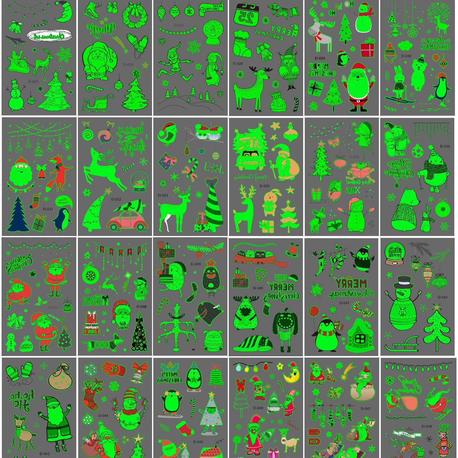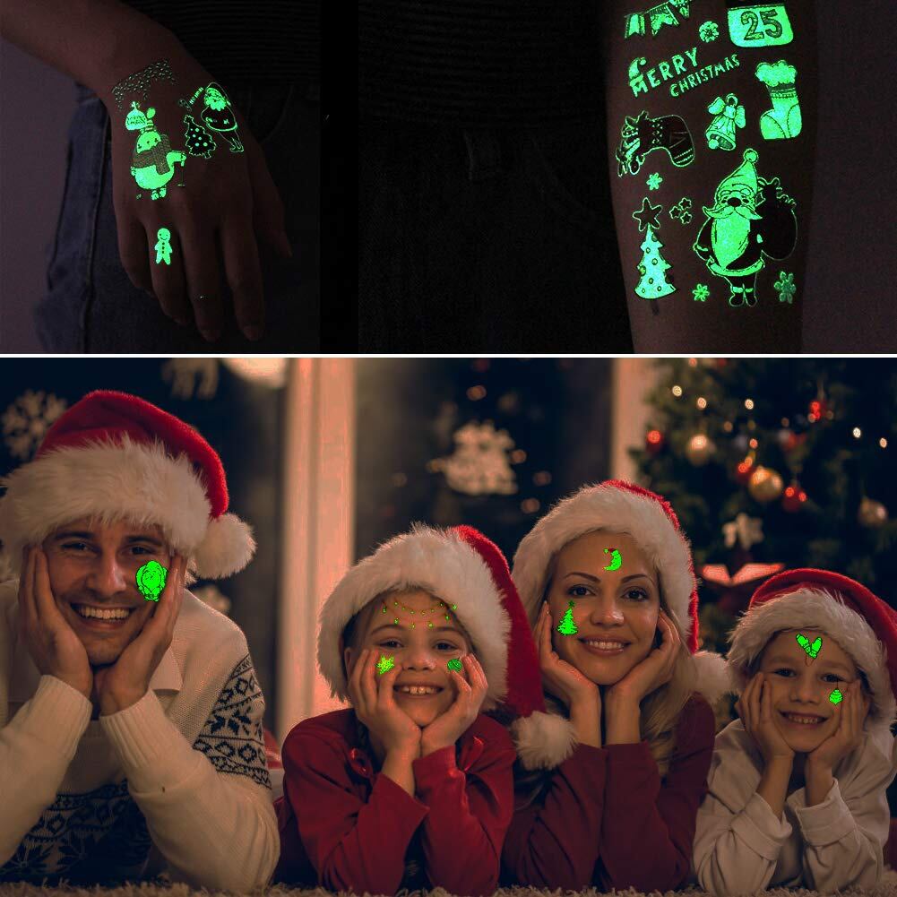★暗闇の中で輝いている - 綺麗なクリスマス タトゥーシール 光る、多くの異なる輝くボディシール、クリスマス パーティー、児童の誕生日に適して、コスプレ、学校の活動、 友達を贈呈して、友情を増進します。