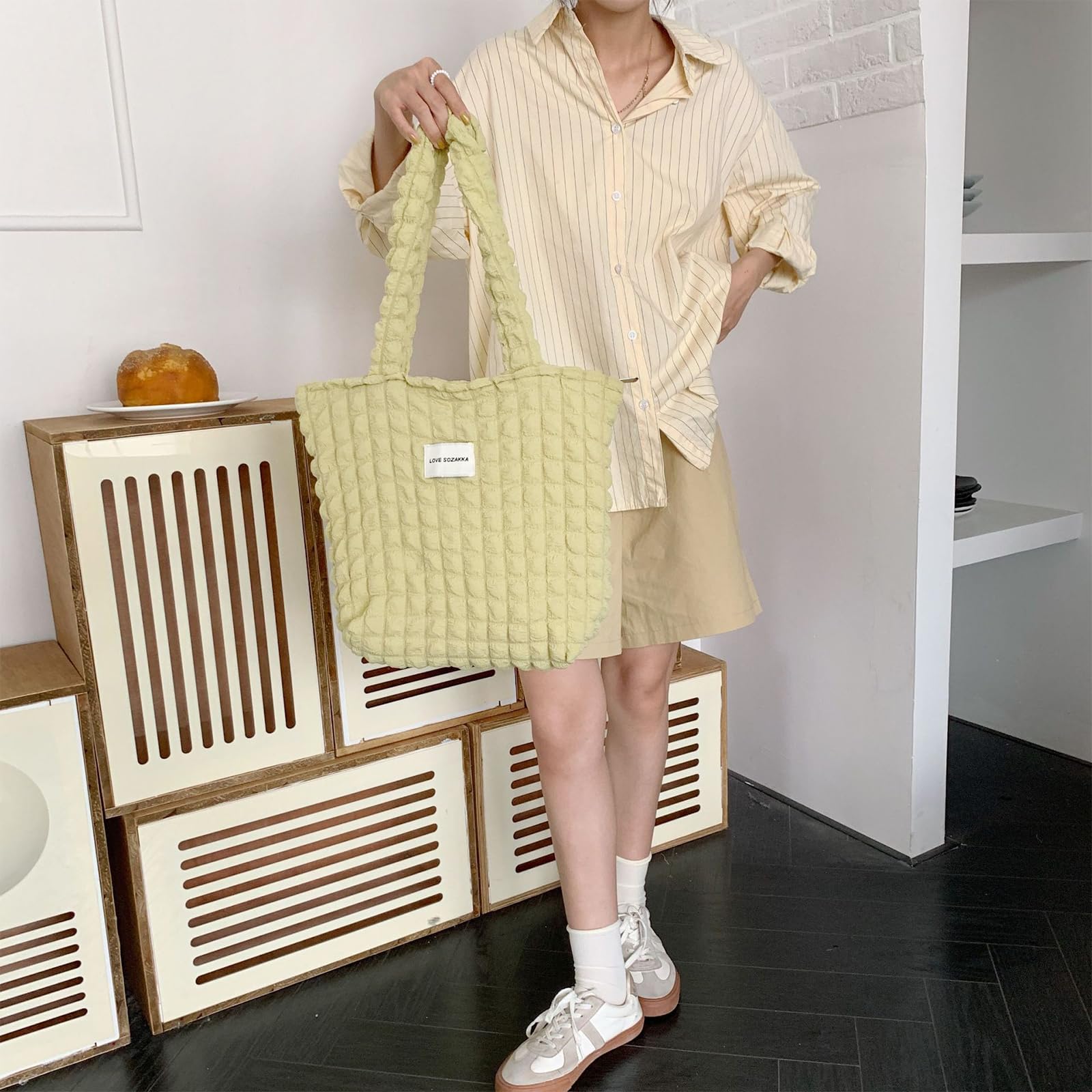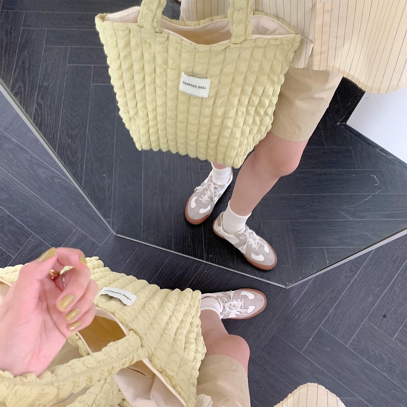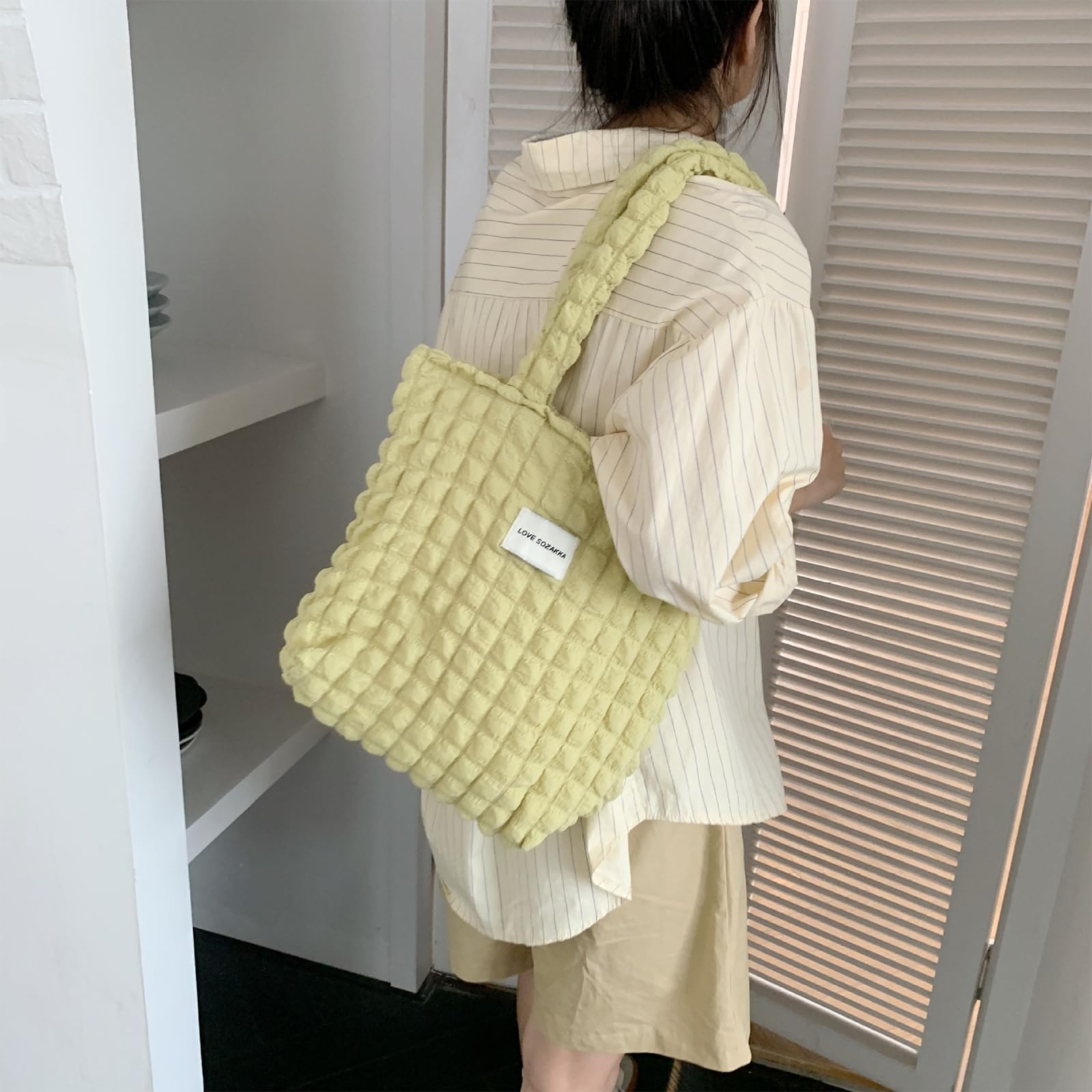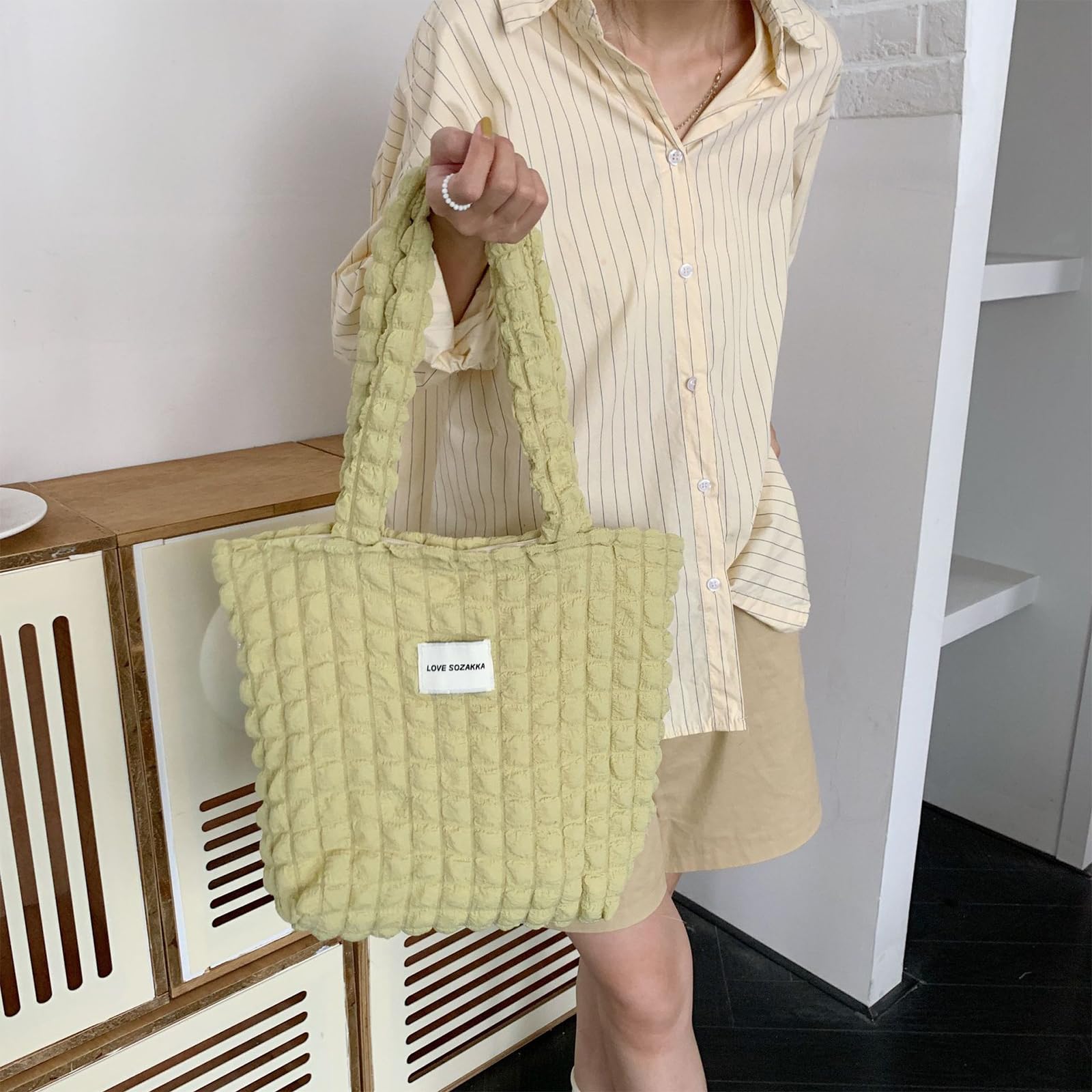 【在庫処分】[happykau] ポップコーンバッグ トート キルティングバッグ レディース ショルダーバッグ シャーリング 可愛い 軽量 手提げ ファスナー付き おしゃれ 凸凹 通勤 通学 大容量 | GIGATERA