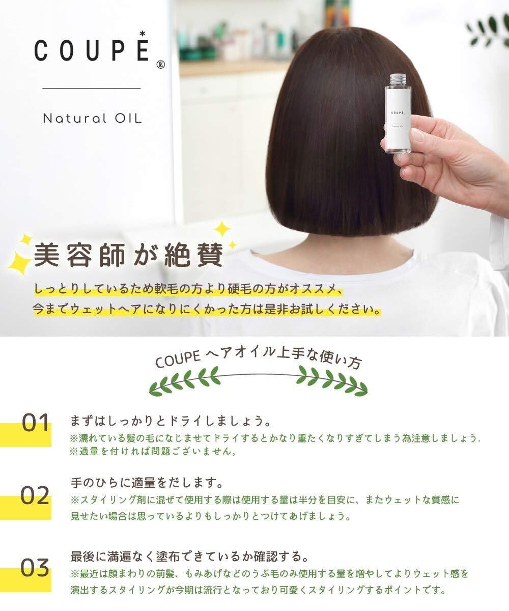 【在庫処分】COUPE ヘアオイル スタイリング オーガニック 無添加 ウェット 100ml