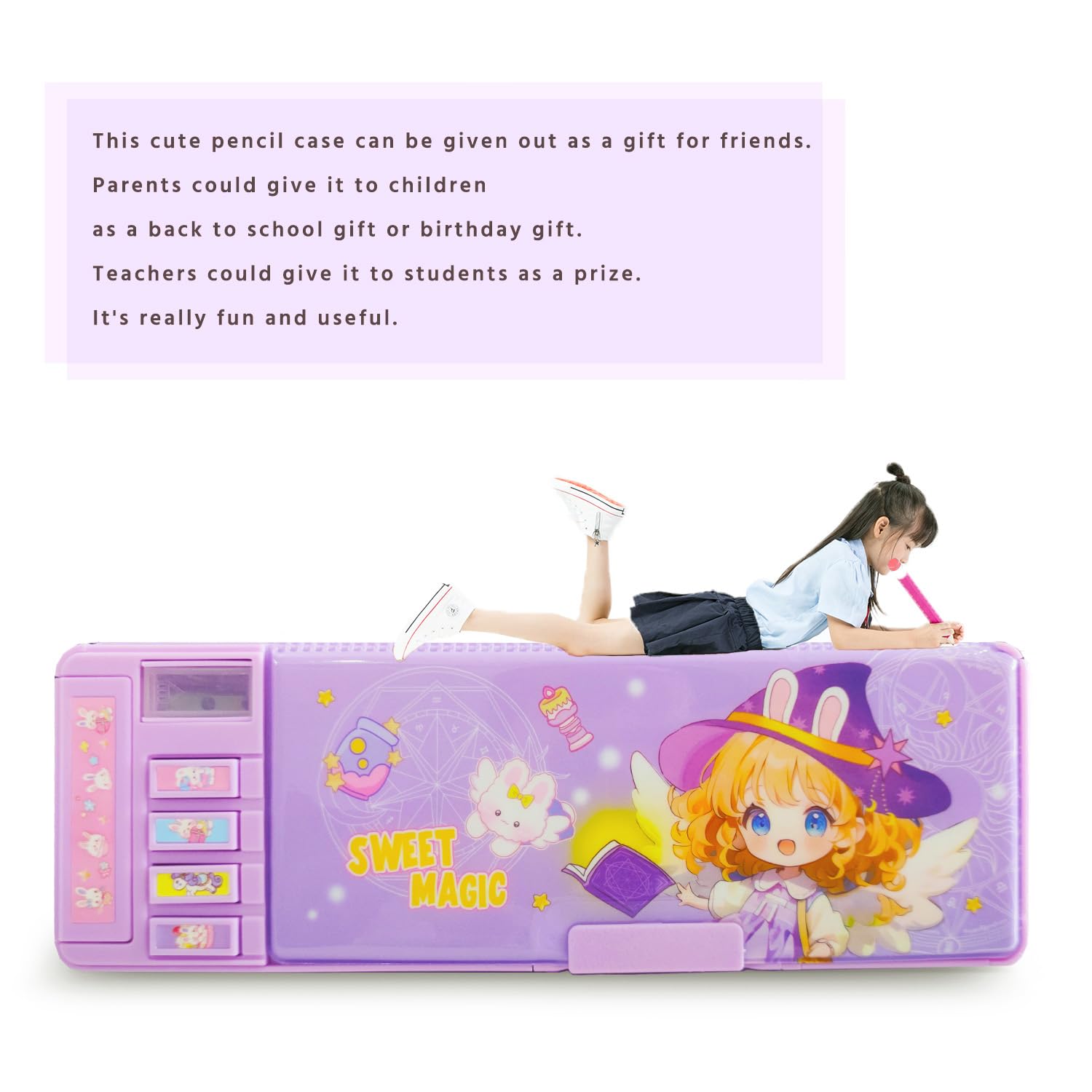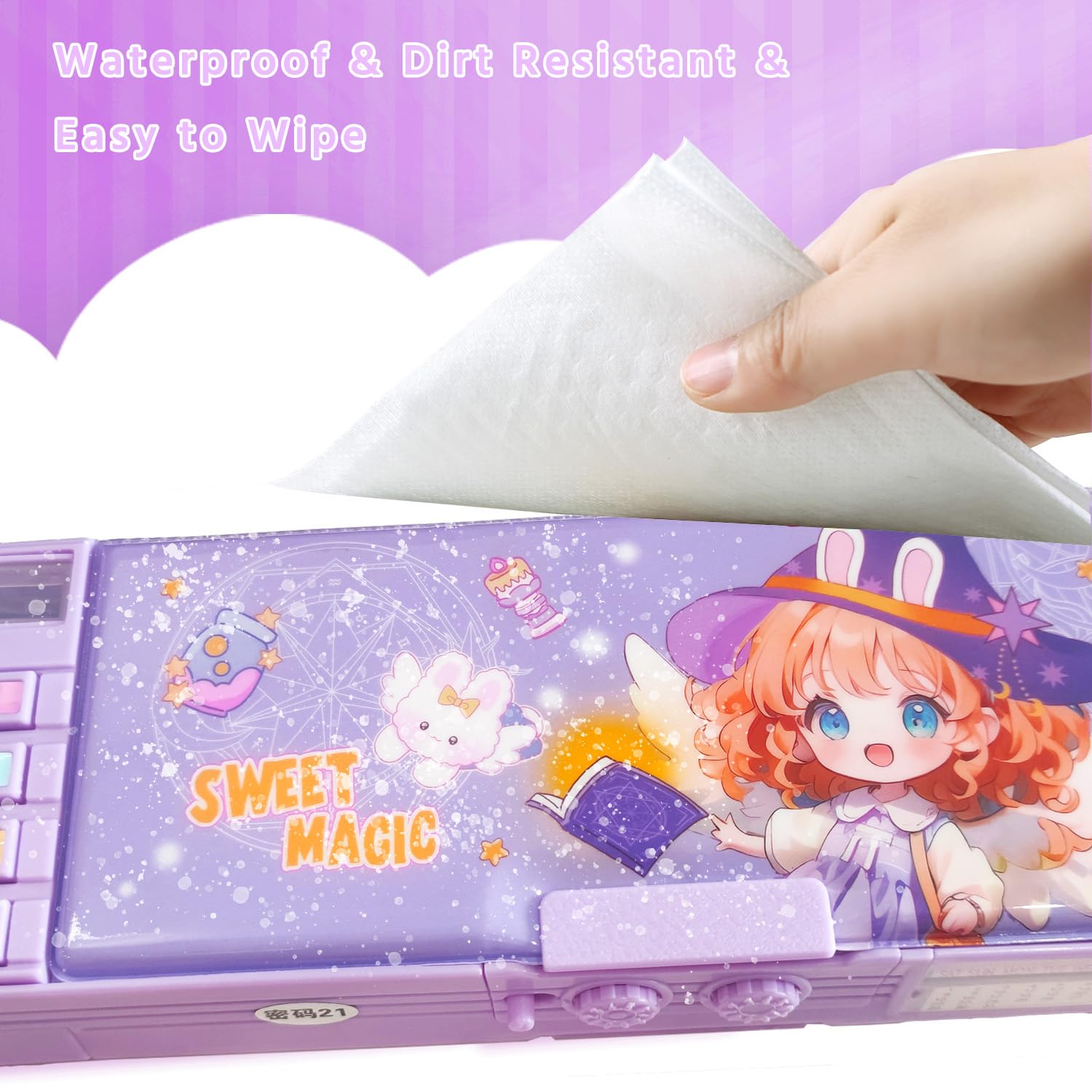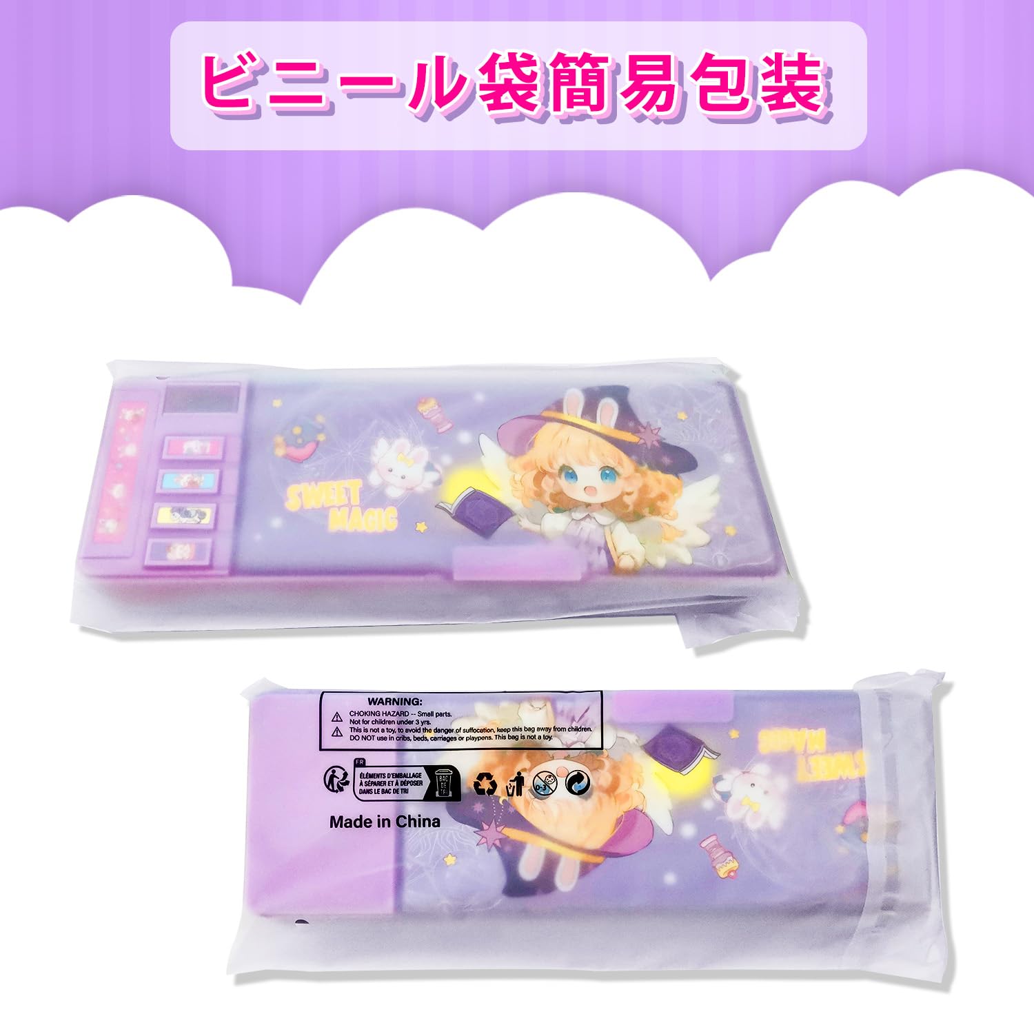 筆箱 ペンケース 小学生 女の子 男の子 両面開き 多機能 パスワード ロック ふでばこ 鉛筆削り付き 文房具 可愛い (パープル)