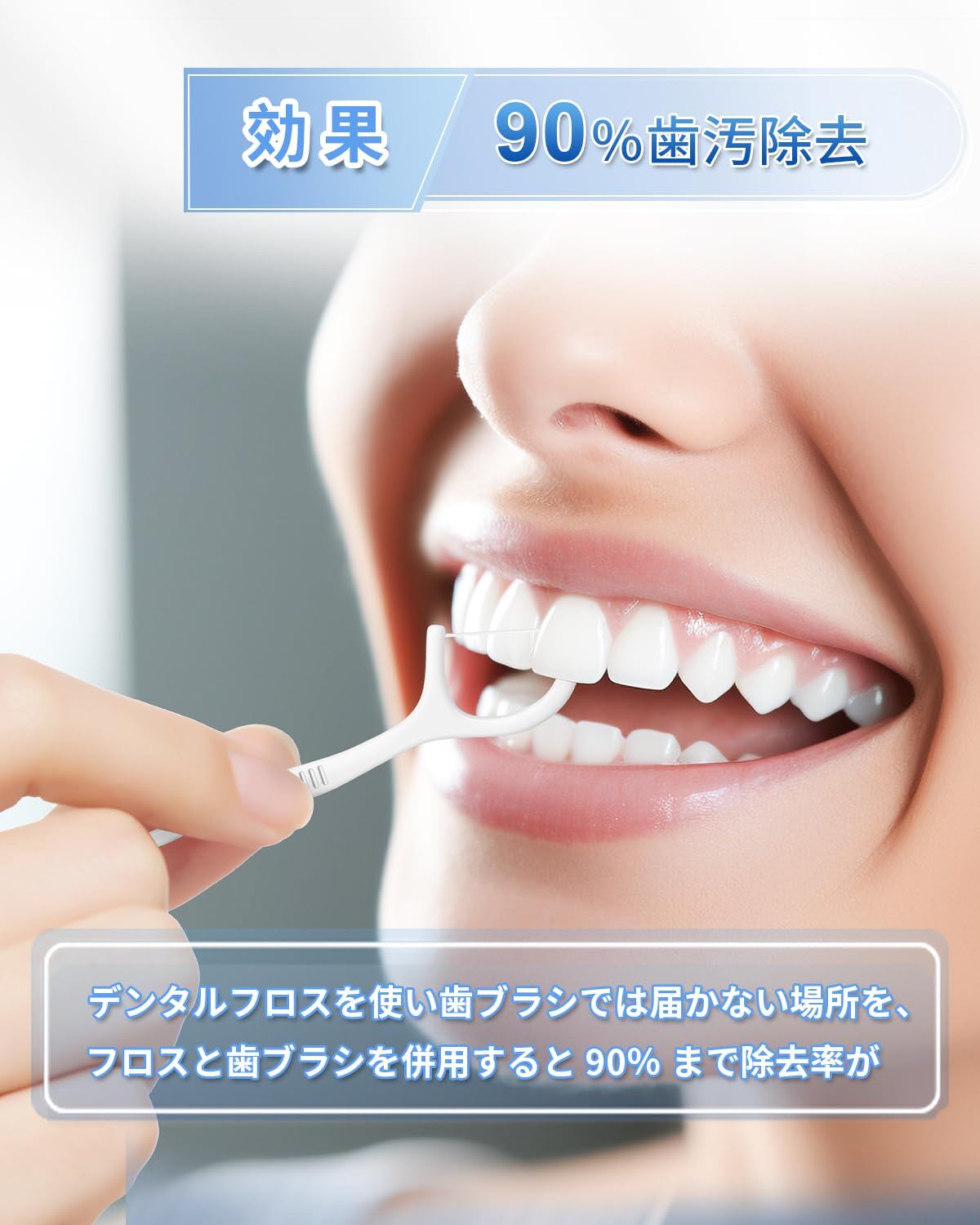 使いやすい、90%歯汚除去:フロスと歯ブラシを併せて使うこで歯間の歯汚れ除去率が90%、効果的な歯間ケアを実現します。持ち手付きのフロスタイプ、握りやすく、片手でも歯間に差し使いやすい。先端にピックが付い、歯の裏側で奥歯の歯汚などの除去しきれなかった汚れ、食べかすはピックでかき出す。毎食後に使う、毎日のケアにはかかせません。