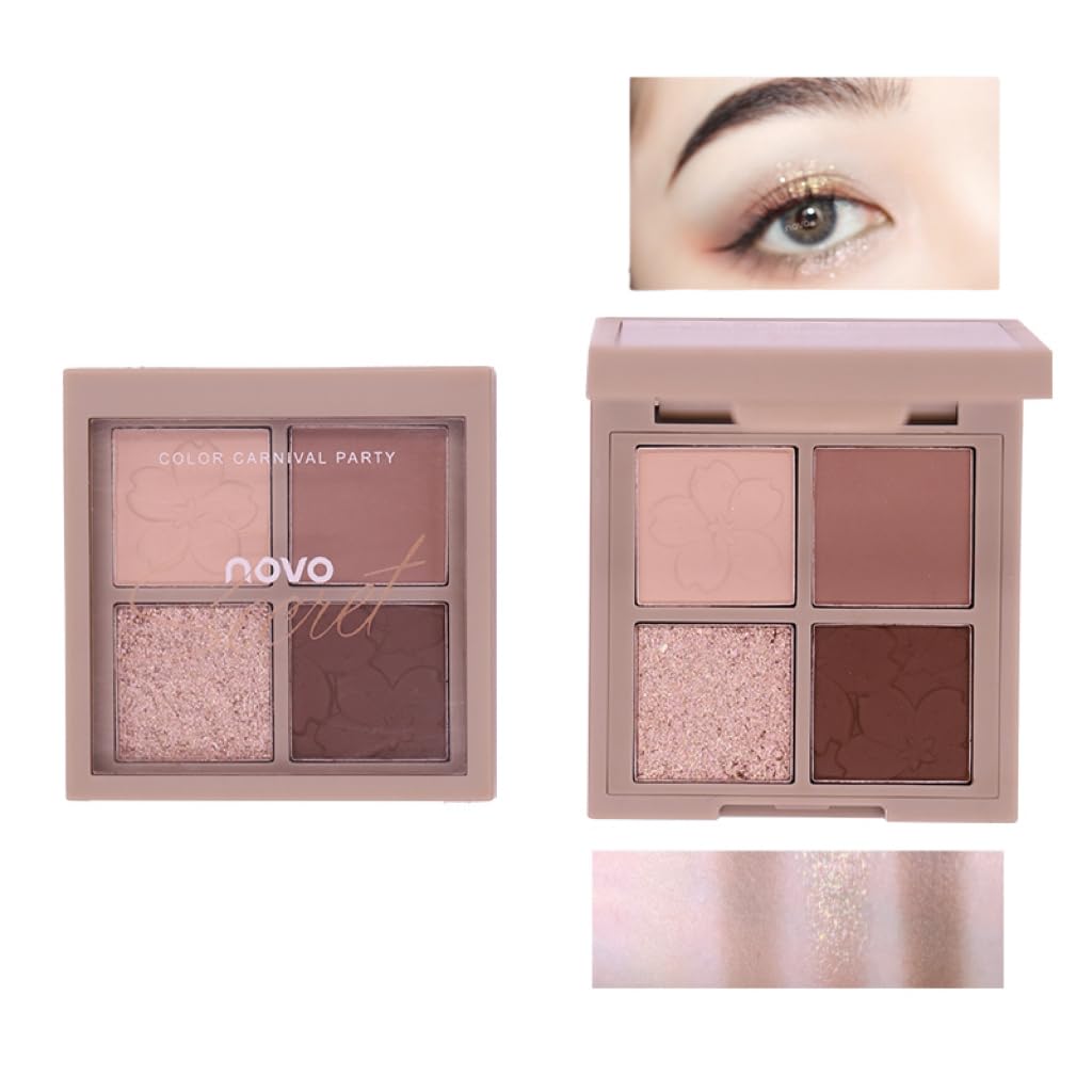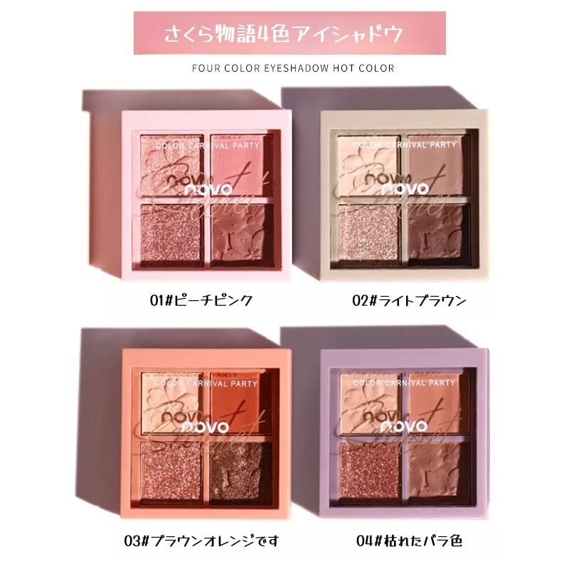 UNYOKE さくらものがたり4色アイシャドウ長持ち発色ミニパレット、アイシャドウパレット、日常の自然な色合い、長持ち、混合可能、色彩豊か、ベルベットテクスチャ、Matte&Shimer、高色素-02#ライトブラウン