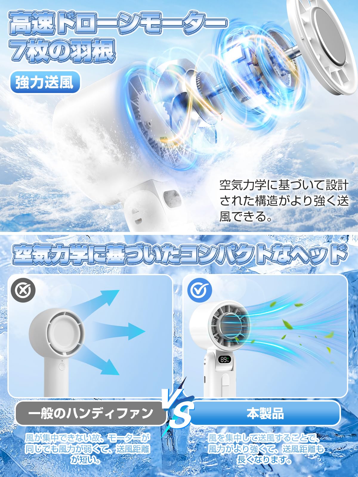 ??【冷却プレート搭載 ・ -20℃瞬間冷感】地球温暖化のこの時代、年々高くなる夏の気温、風を吹くだけの扇風機ではもう満足できません。そこで、冷却プレート搭載のハンディファンが颯爽登場!冷却機能をONにしたらすぐ冷感が利く!肌に当てると瞬間に氷のような冷たさを感じられます!蒸し暑い真夏でもこれで快適に過ごせます。