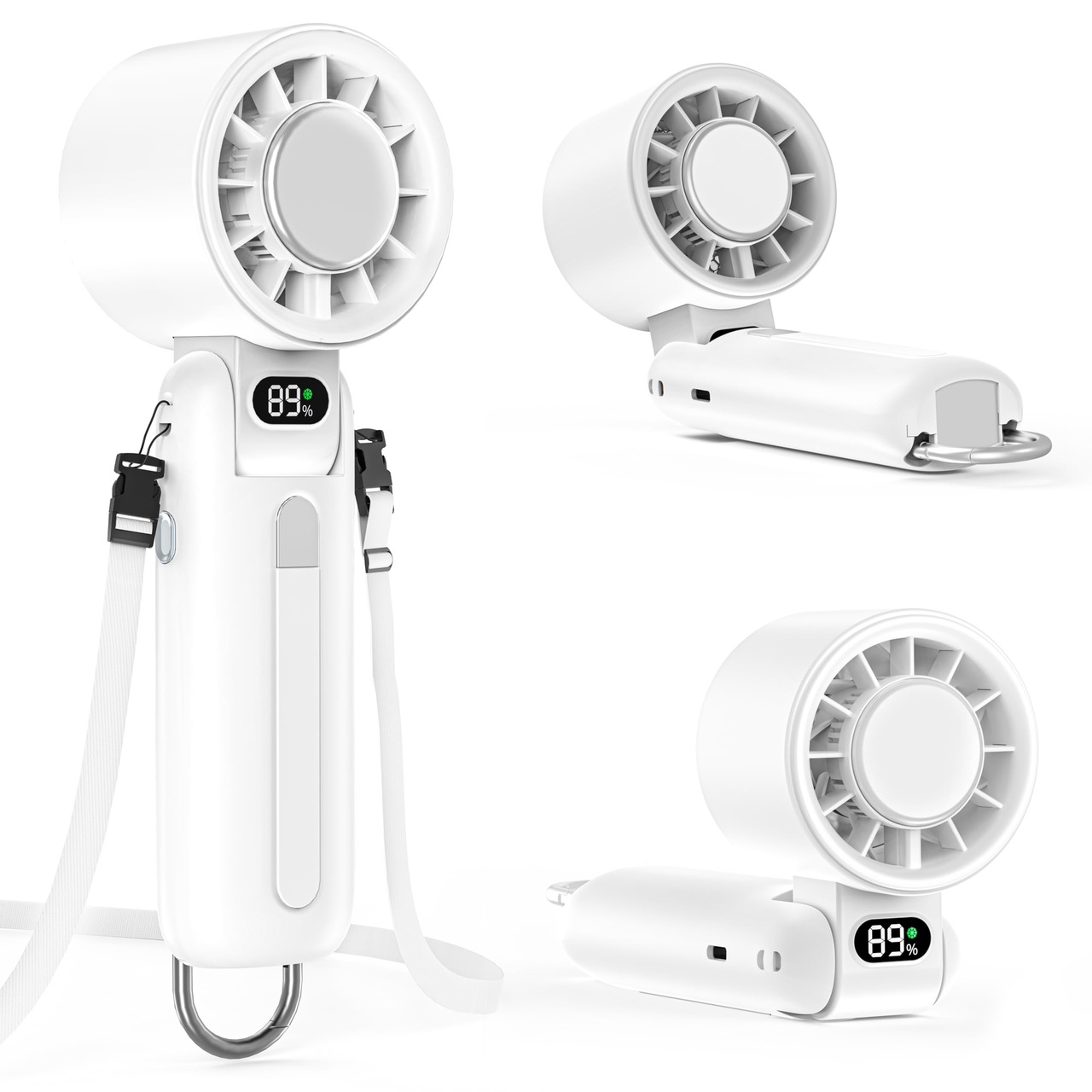 【セール】【2025新型】 ハンディファン 冷却プレート付き 携帯扇風機 冷感 手持ち扇風機 小型 強力 100段階風力 160°折り畳み 5000mAh 長時間稼働 LED残量表示 USB充電式 暑さ対策 卓上 首掛け カラビナ付き ストラップ付属 ホワイト | GIGATERA