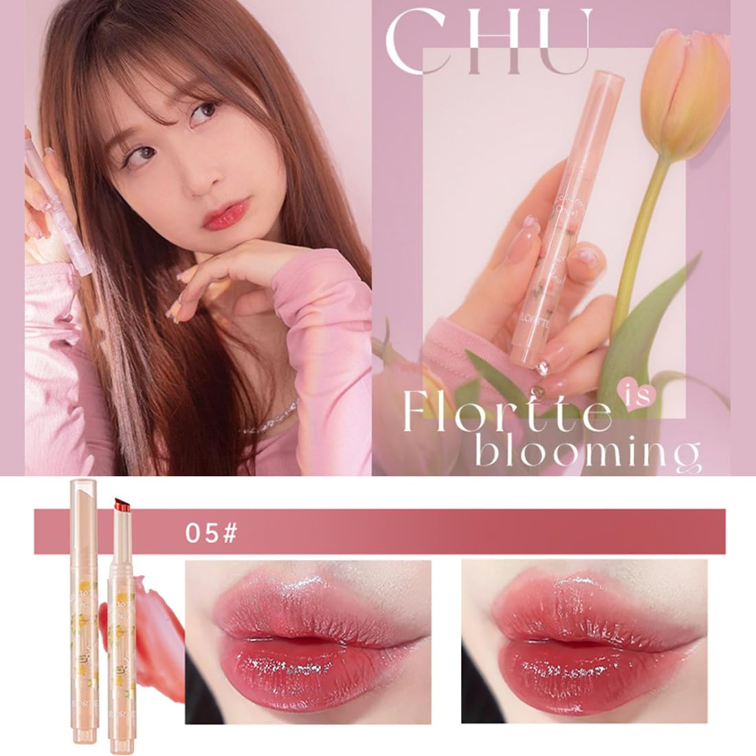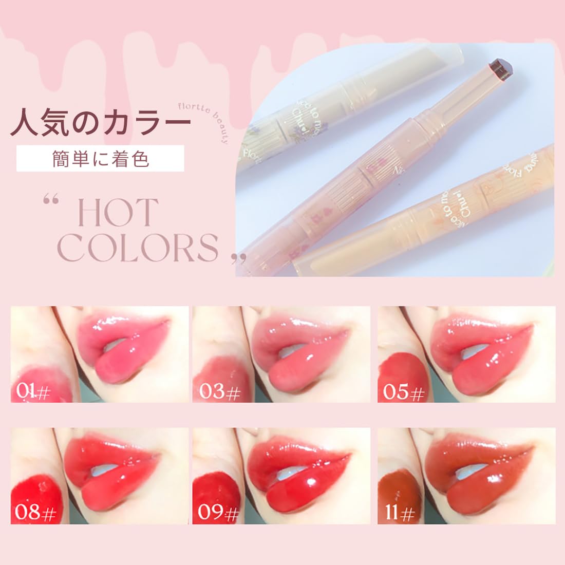 Flortte メルティングシアーリップ リップグロス 高発色 リップ 血色 垢ぬけメイク 落ちない 保湿口紅 光沢 ロングラスティング 長持ち 色ムラゼロ つき防止 (#05)