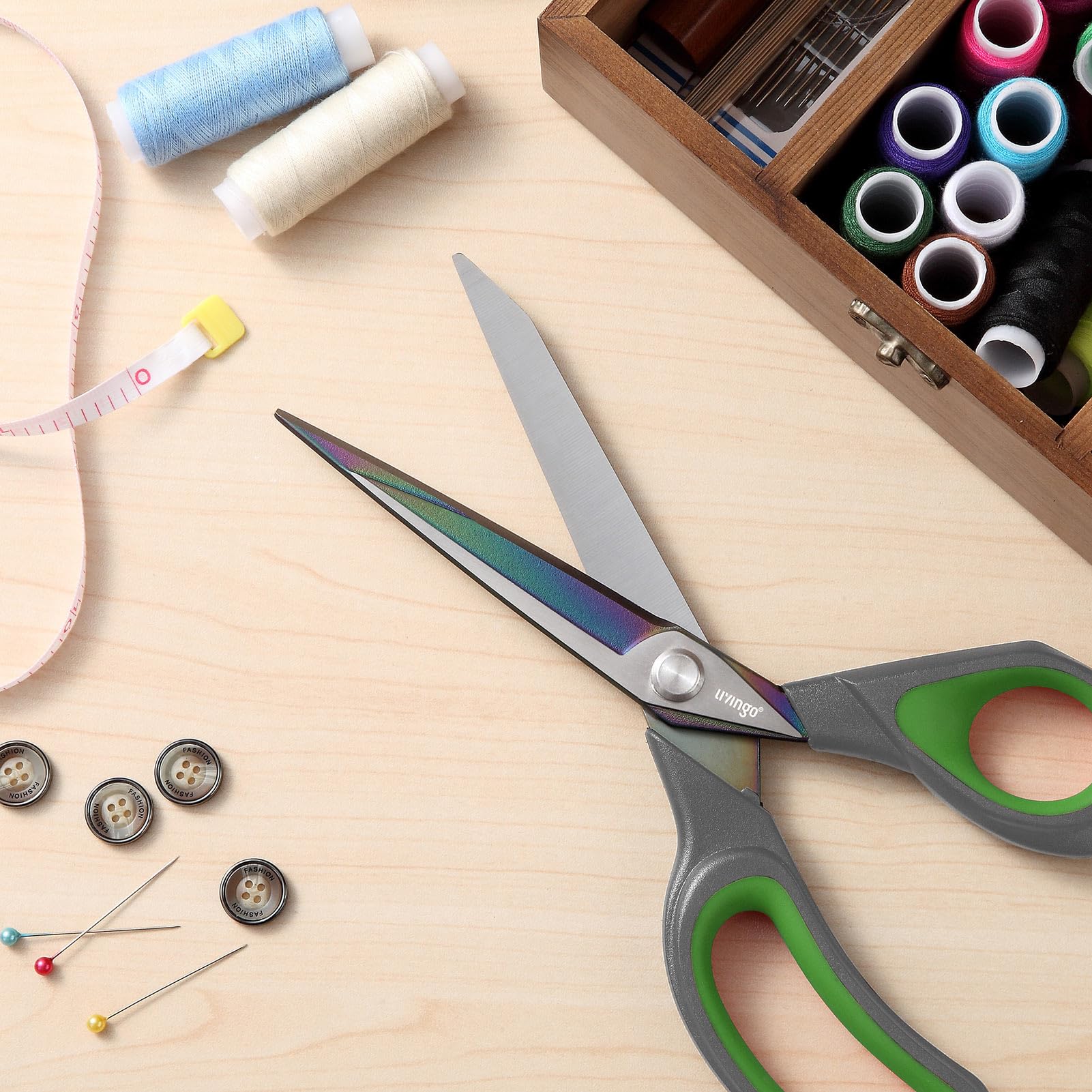 LIVINGO タチバサミ、鋭いチタンコーティングのノンスティック刃、テープ、段ボール、布の切断に使用、16 層の布を切断可能、鍛造ステンレススチール製、ゴム製ソフトグリップ、240mm