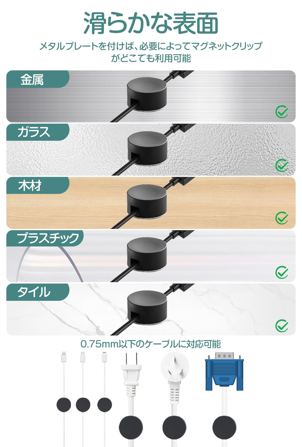 【生活を楽々に】USBケーブルや充電ケーブルなどが紛失や落下する心配がなくなり、ケーブルを使用しないときでもしっかりと取り付けられます。オフィス、台所、車内などでごちゃごちゃとしたデータケーブル、ヘッドフォンケーブル、電源コードなどに別れを告げます。机上のケーブルの乱れにお悩みの方にお勧めします。