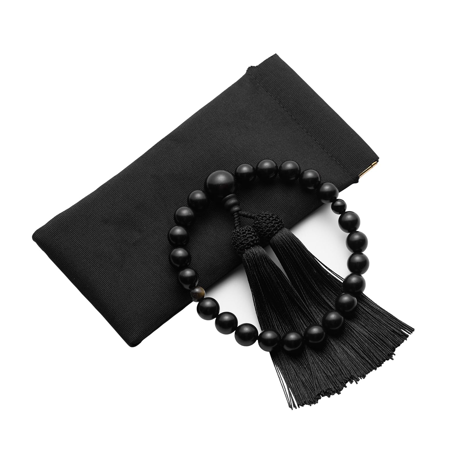 【セール】[§繁∞FAN LOU∞樓藝雕∞5] 数珠 男性用 縞黒檀 艶あり 22玉 正絹頭付房 数珠袋付き 念珠 略式数珠 葬式 墓参り 法事 念誦 全ての宗派に使用可能 (天珠:水晶 房色:黒色) | GIGATERA