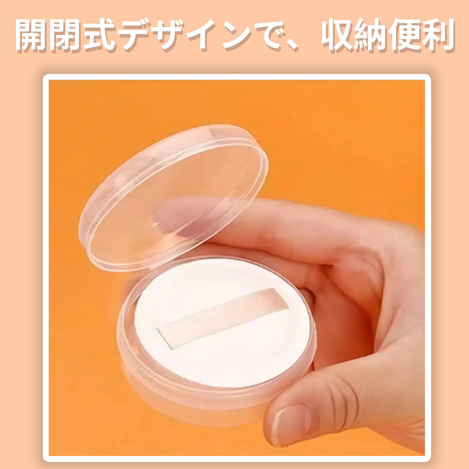 【開閉式デザイン】開閉式のパフ収納ケースには出し入れがとても便利です。
