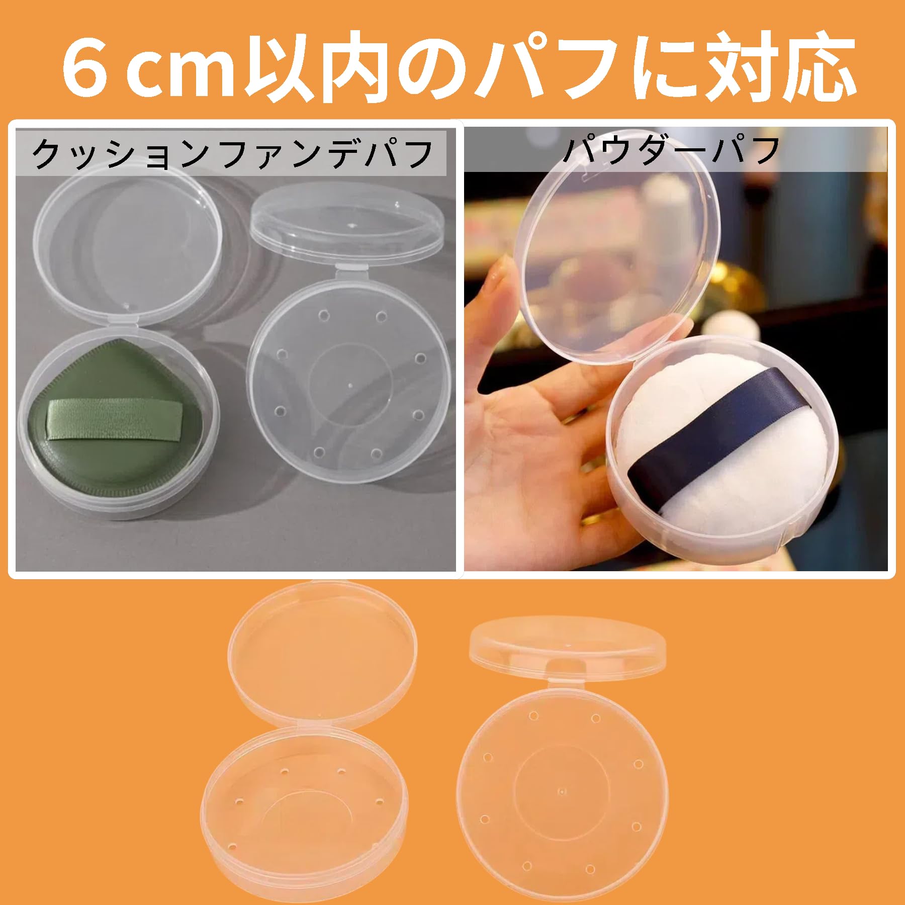 【セール】パフケース 円形 直径6cm メイクスポンジ ケース 携帯用 収納 プラスチック製 透明 通気性あり パフ メーク パウダー ケース 化粧スポンジ ケースのみ 防塵 コンパクト 持ち運び・出し入れ便利 外出 (2)
