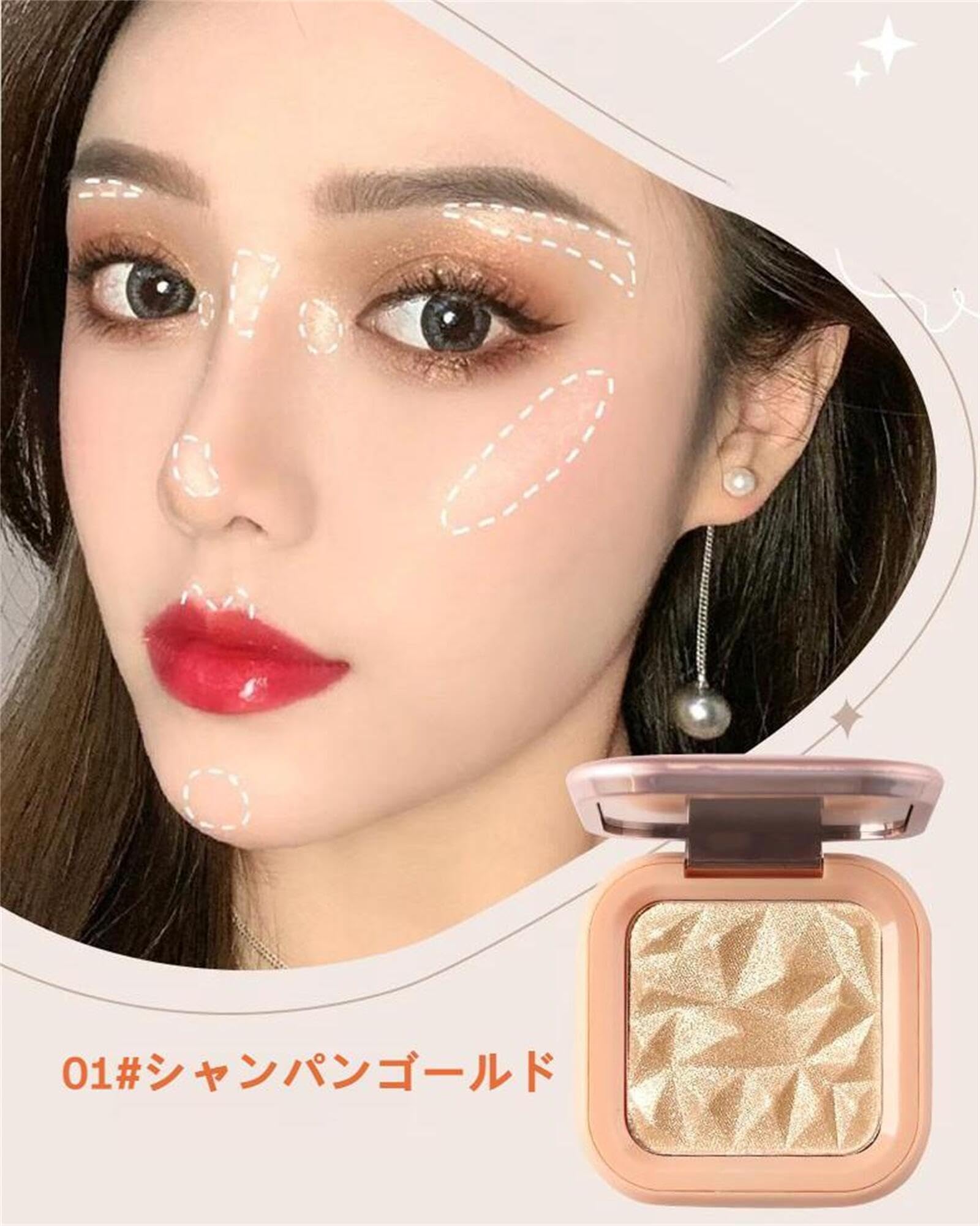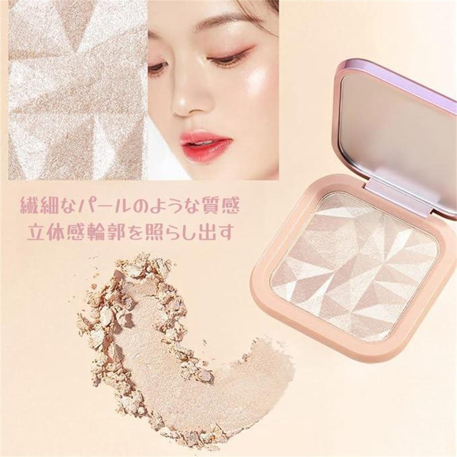 ダイヤモンド ハイライトパウダー ハイライト ルミナイザー グリッター ハイライター パレット パール光沢 キラキラ 立体感 パール ツヤ肌 全肌質 コスメ (01# シャンパンゴールド)
