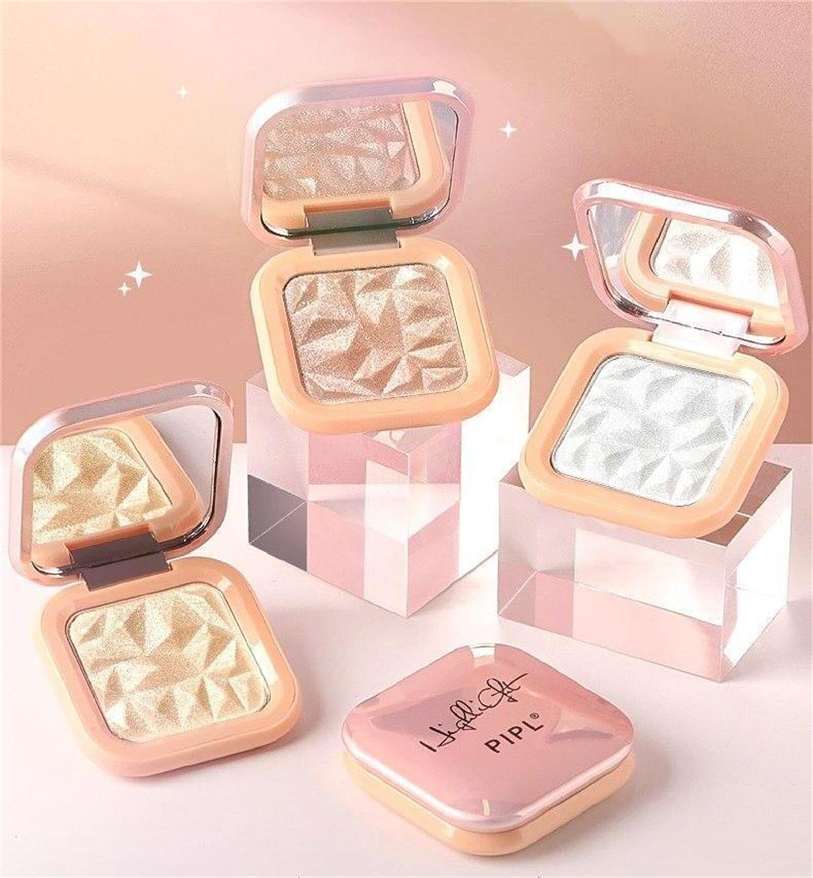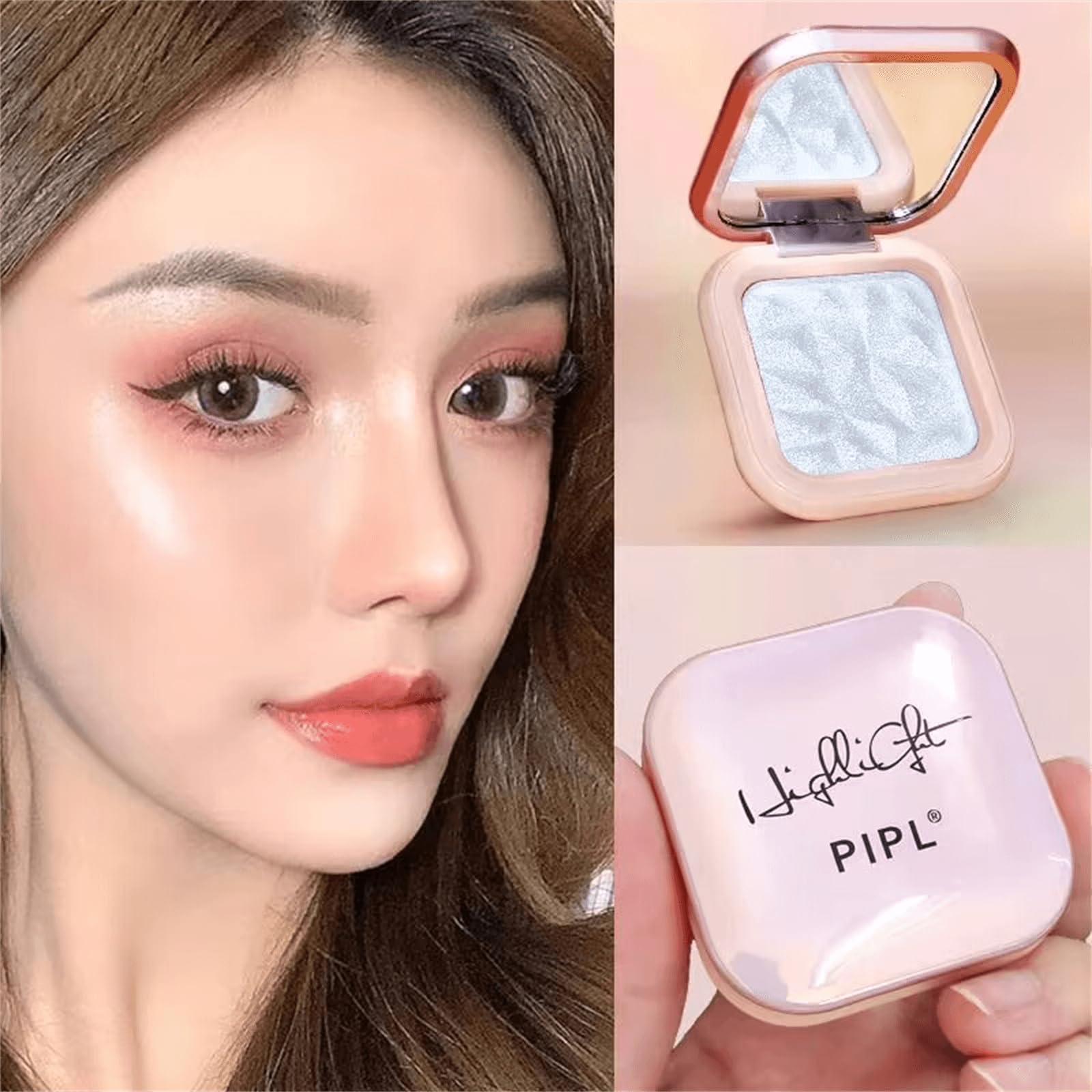 ナチュラルメイク:PIPLハイライトは自然に透き通っていて、キラキラとした立体的なハイライト感があり、イタリアのベーキングパウダーテクノロジーを採用したこのハイライターメイクパレットは、透明で自然なもので、光沢のある3次元のハイライトメイクを示しています。