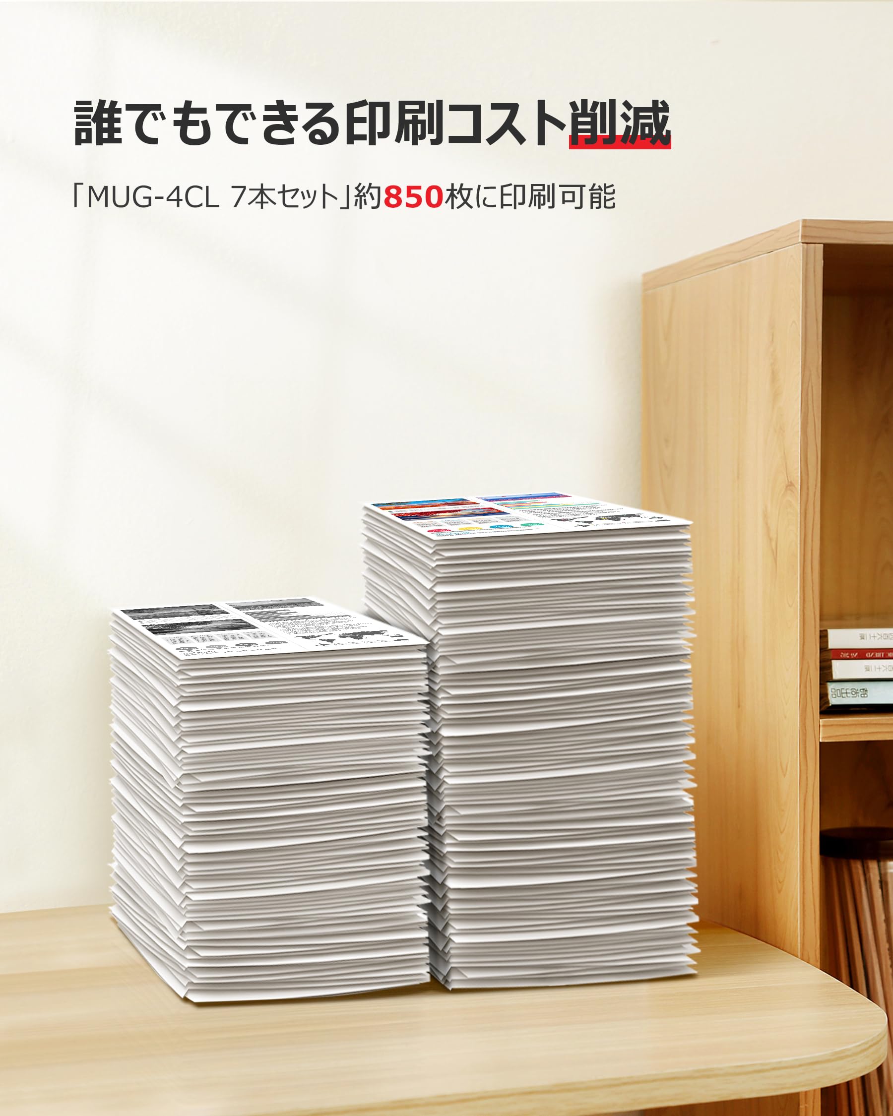 ★【大容量タイプ】MUG BK 約12ml MUG C/M/Y 約13ml 。学習ドリルのお家での印刷や、リモートワーク(在宅勤務)でのお仕事で毎日印刷する人に適しています。