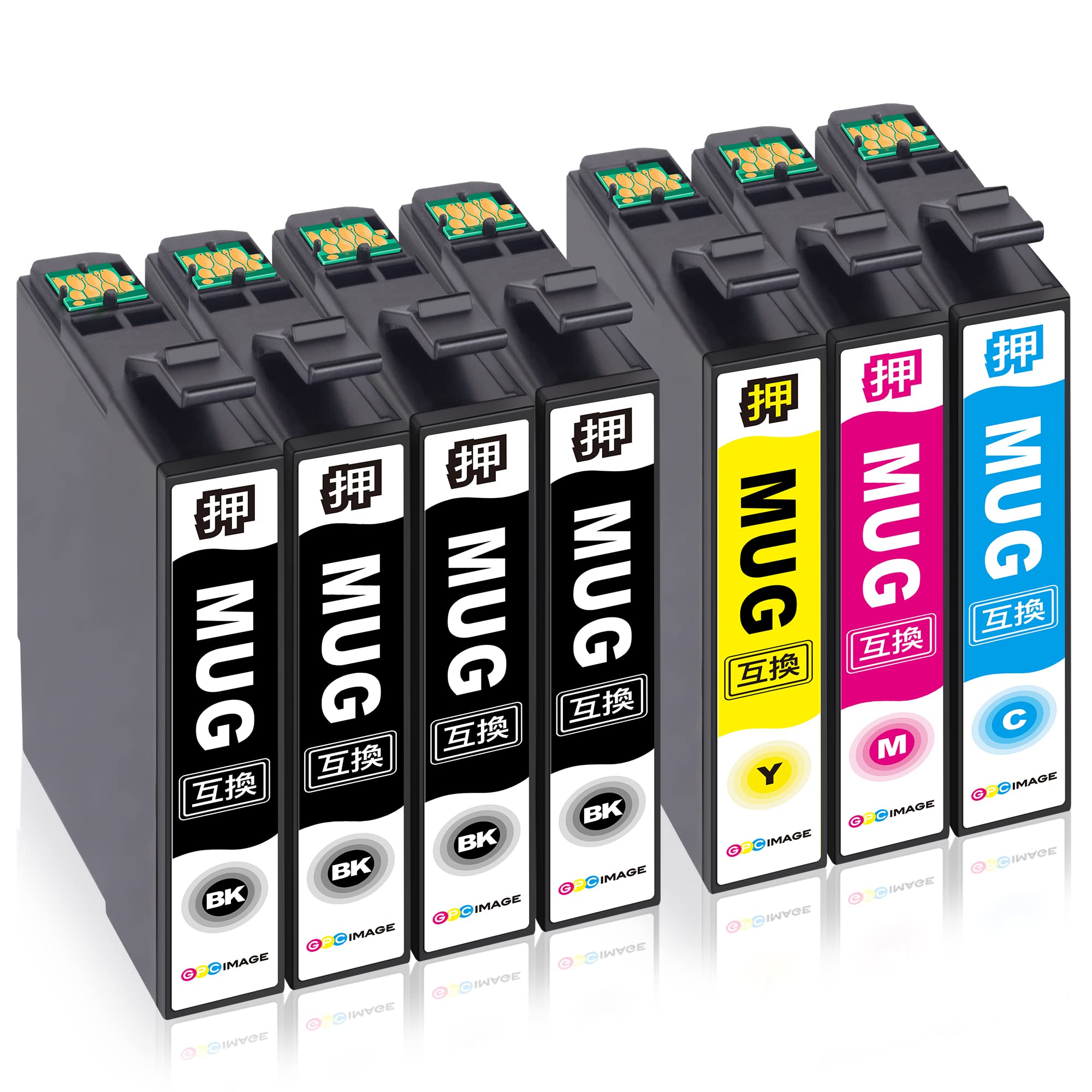 GPC Image MUG-4CL エプソン 用 インク マグカップ 4色パック+ MUG-BK ブラック 3本 (計7本) 増量タイプ エプソン 対応 マグカップ 純正と併用可能 Epson 用 MUG マグカップ インク EW-452A EW-052A 対応の マグカップ 互換インク