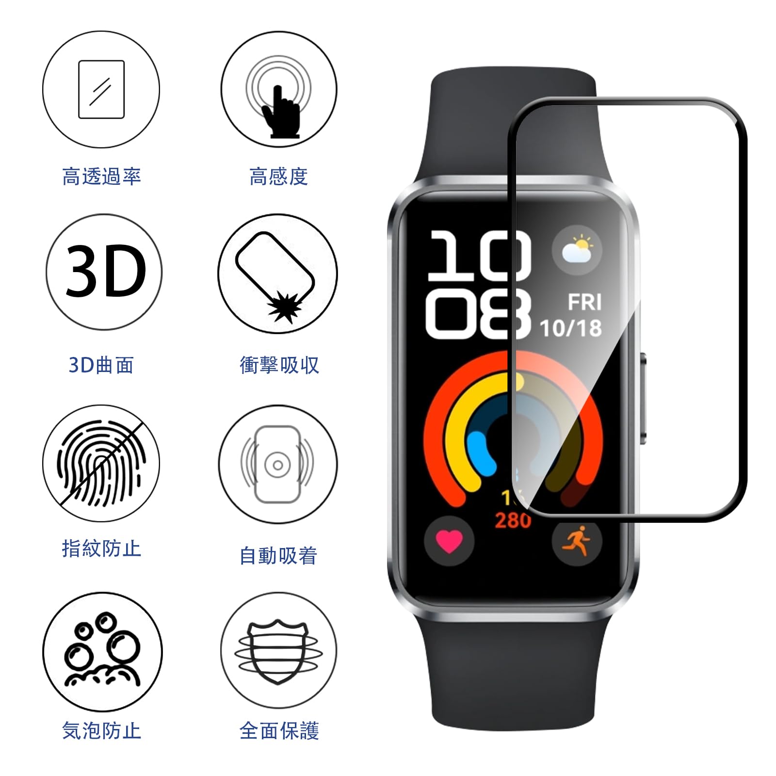 【対応スマートウォッチ】HUAWEI Band 10/Band 10 Aluminum Edition 専用保護フィルム。3枚セットです。
