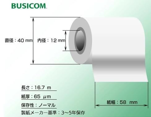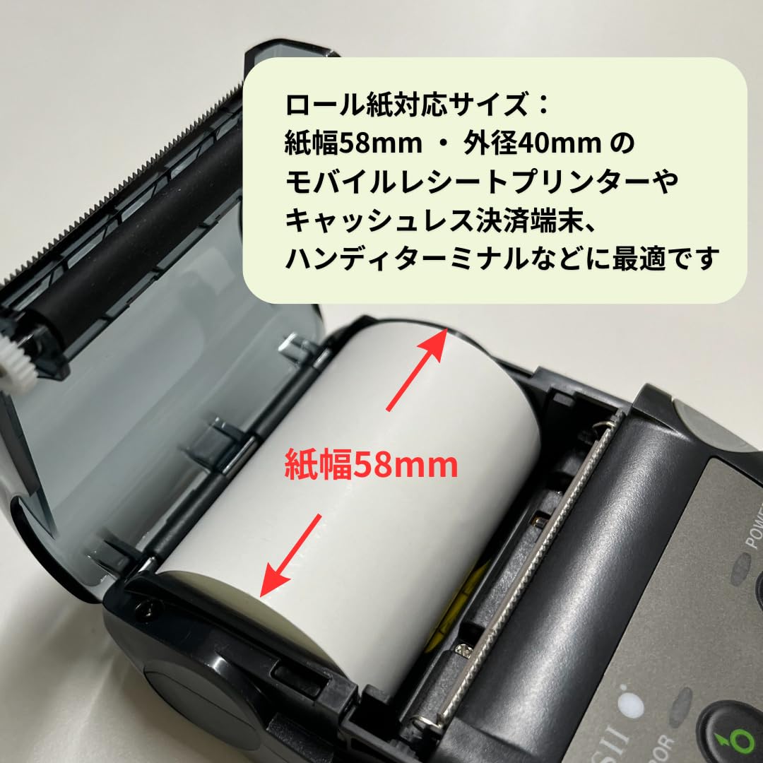 ロール紙サイズ:幅58mm×外径40mm×内径12mm (58×40×12)