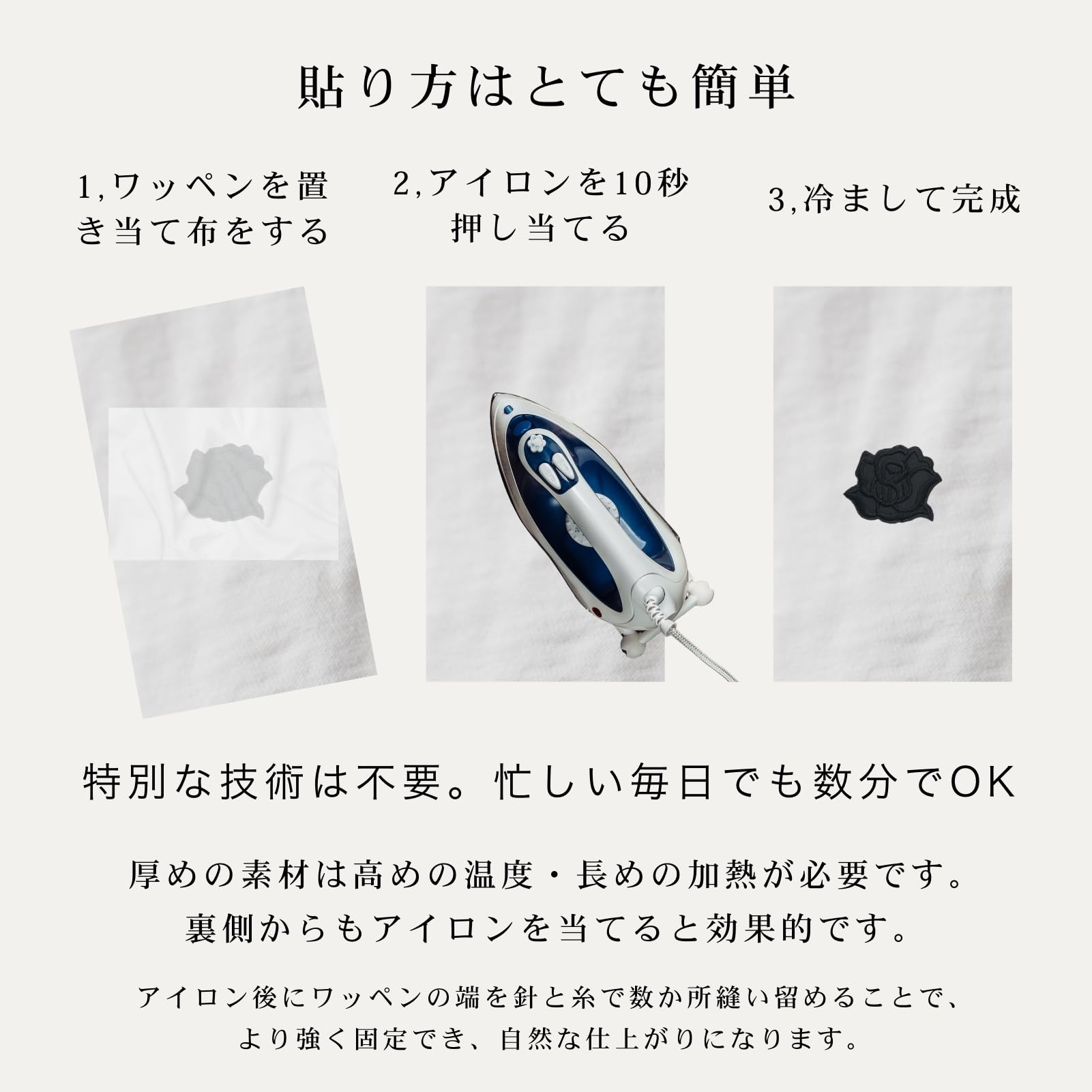 品の良い光沢感&キメ細やかな刺繍が◎お洋服・バッグ等に映える大きめサイズ!ぶきっちょさんでもO.K!なアイロン接着式です♪