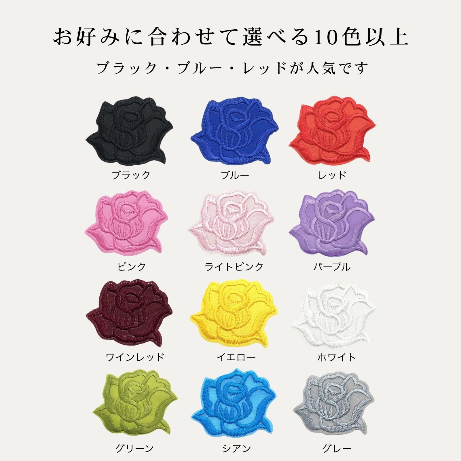 バラをモチーフにした、かわいくてエレガントなワッペンです。