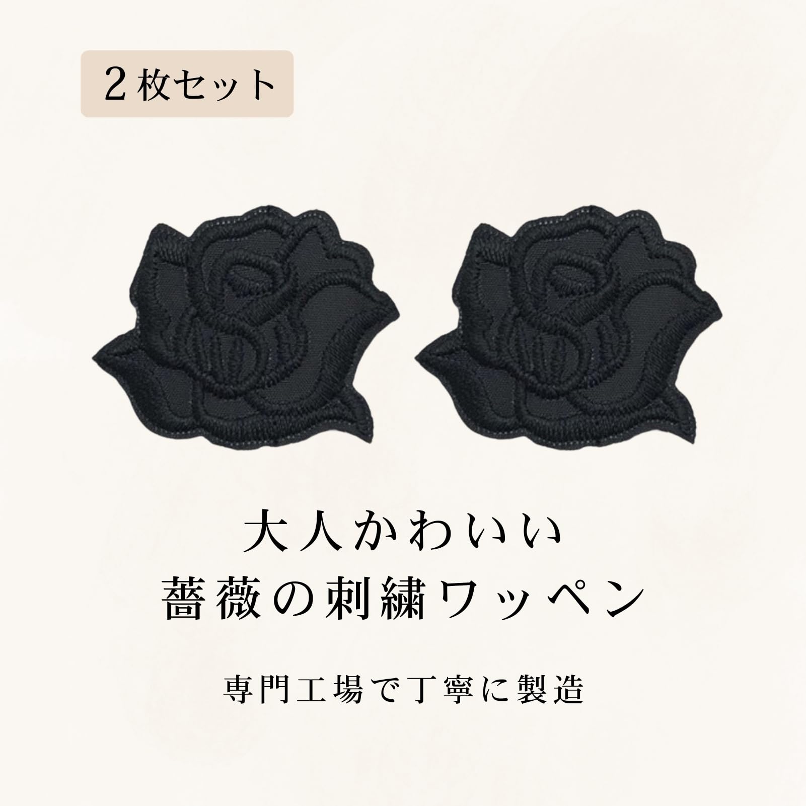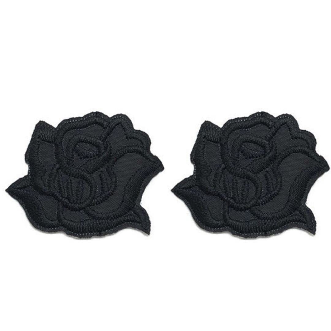 [ドナリー]刺繍 バラ 2枚セット ワッペン アップリケ リメイク デコ 雑貨 アイロン接着 (ブラック 中)