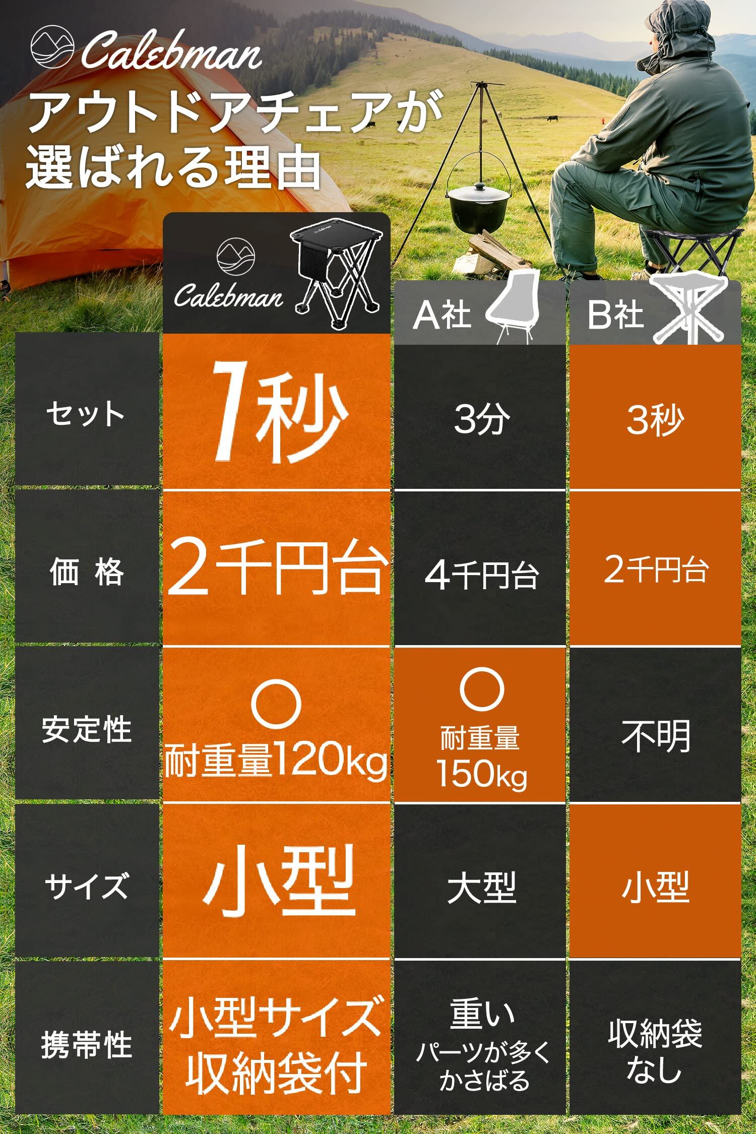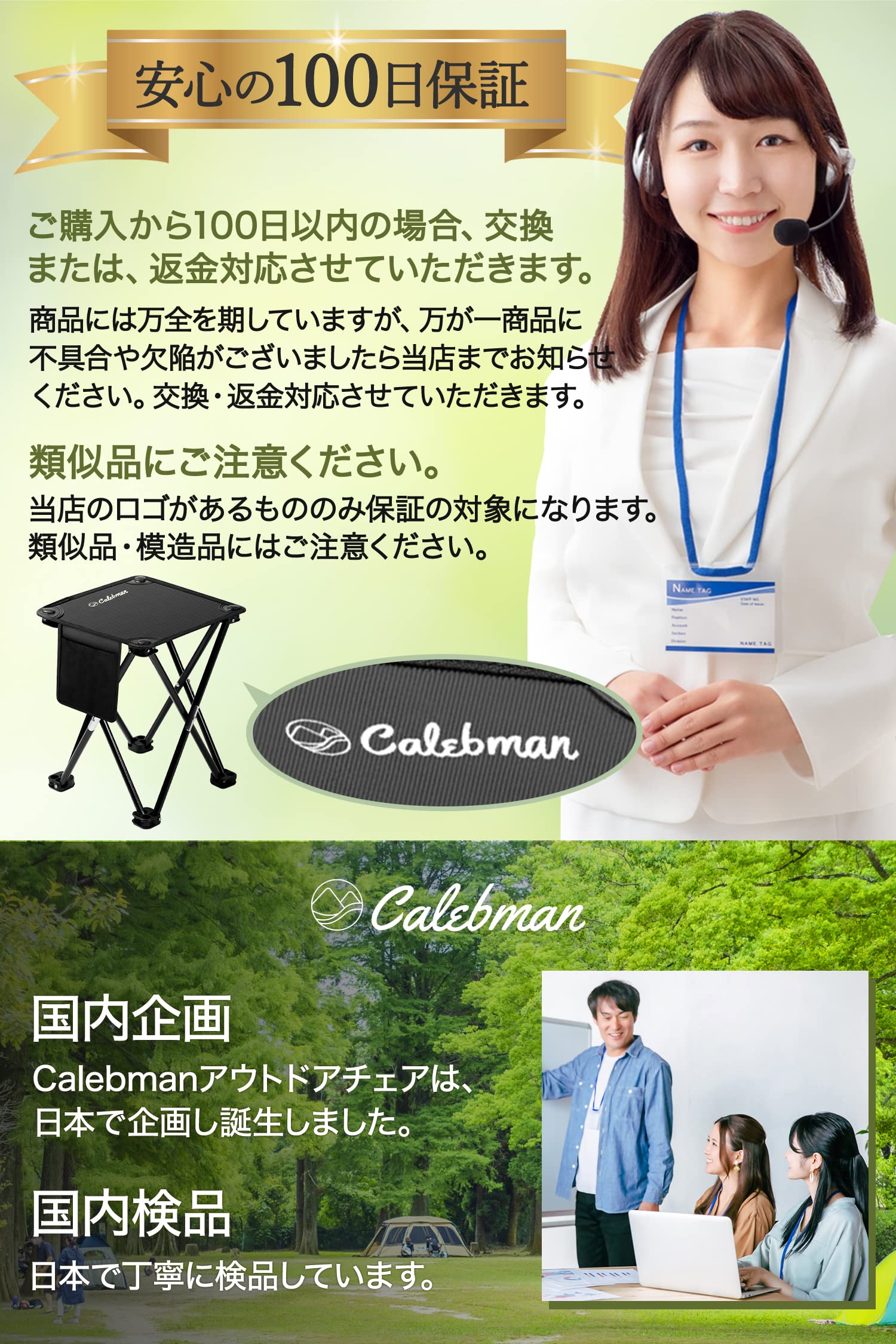 【日本で企画しました】Calebmanアウトドアチェアは、日本で企画し誕生しました。アウトドアライフをもっと便利に、もっと楽しく過ごしていただける商品を企画しています。商品はご購入から100日間の付。なにかございましたら日本人スタッフが丁寧に対応いたします。