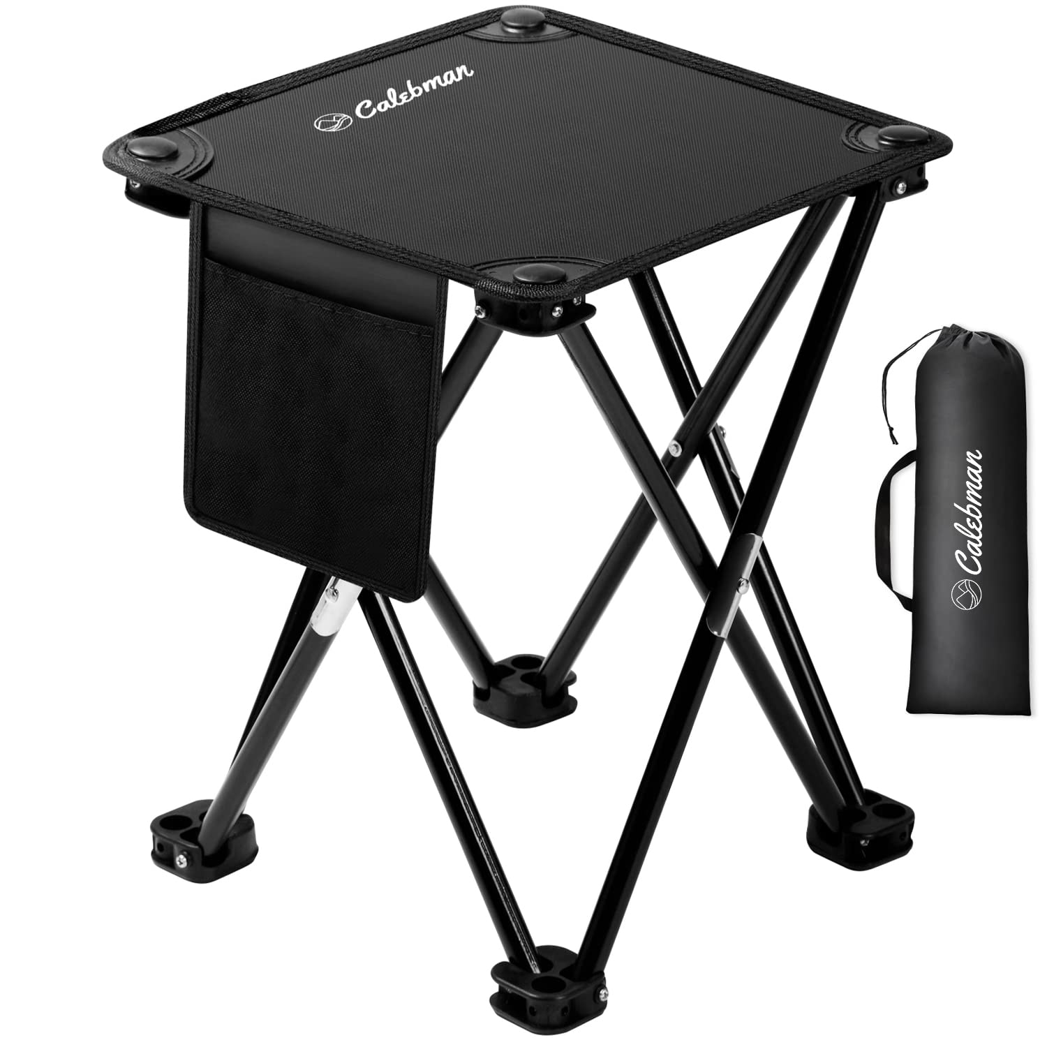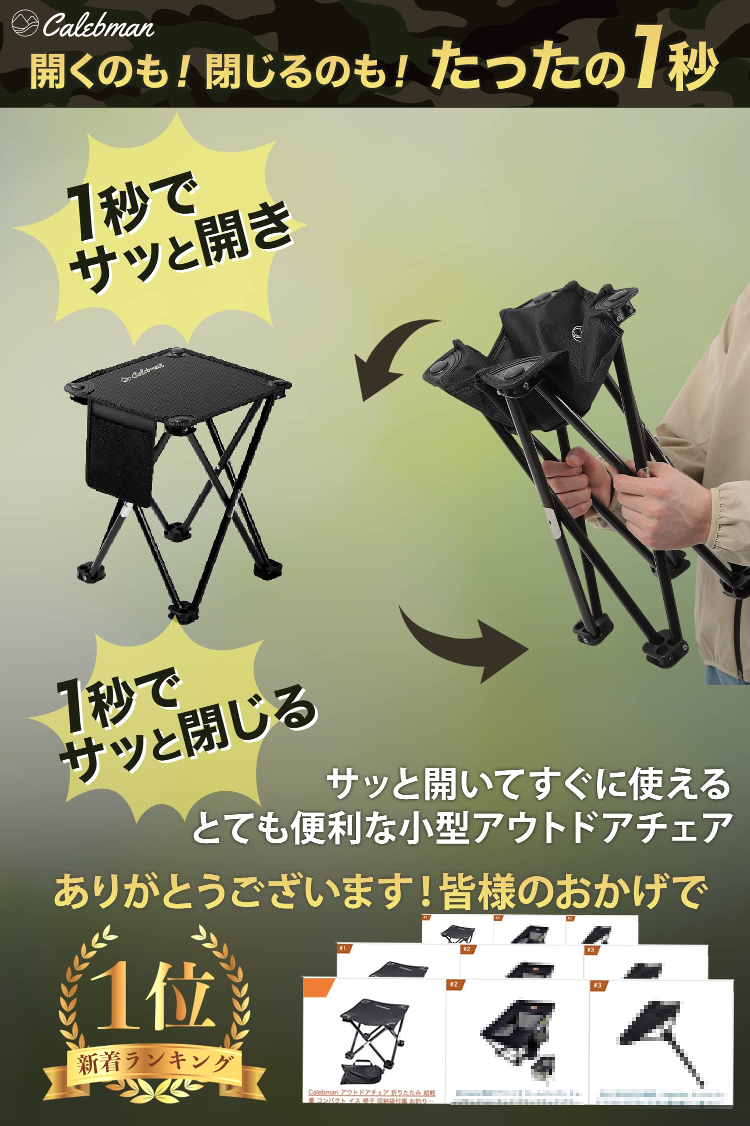 【商品仕様】○カラー:黒、無地ブラック ○サイズ:縦28cm×横28cm×高さ35cm ○重量:0.74kg ○耐重量120kg ○素材:ステンレス、600Dオックスフォード生地 ○セット内容:アウトドアチェア、収納袋 ○用途:キャンプ、釣り、登山、BBQ、海、遠足、公園、テーマパーク、ベランダ、ガーデニング、行列の待ち時間用など ○ブランド:Calebman <安心の100日付>