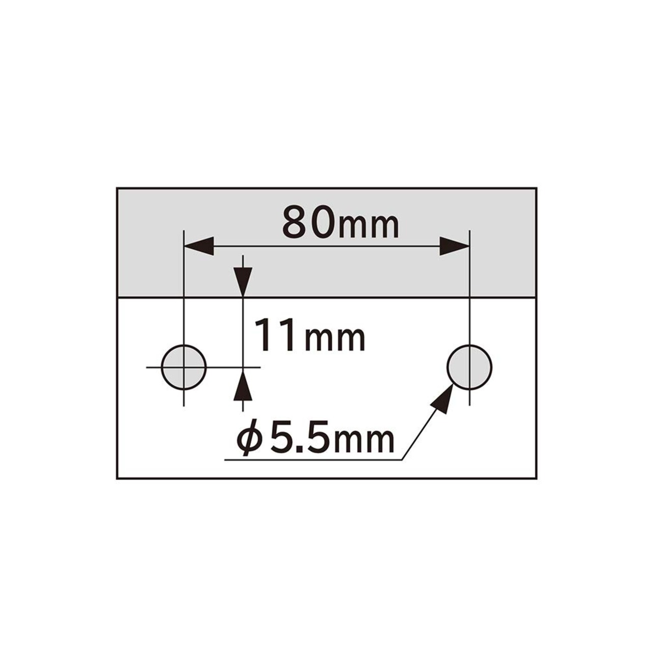穴径:5.5mm 穴間隔:80mm 穴奥行:11mm