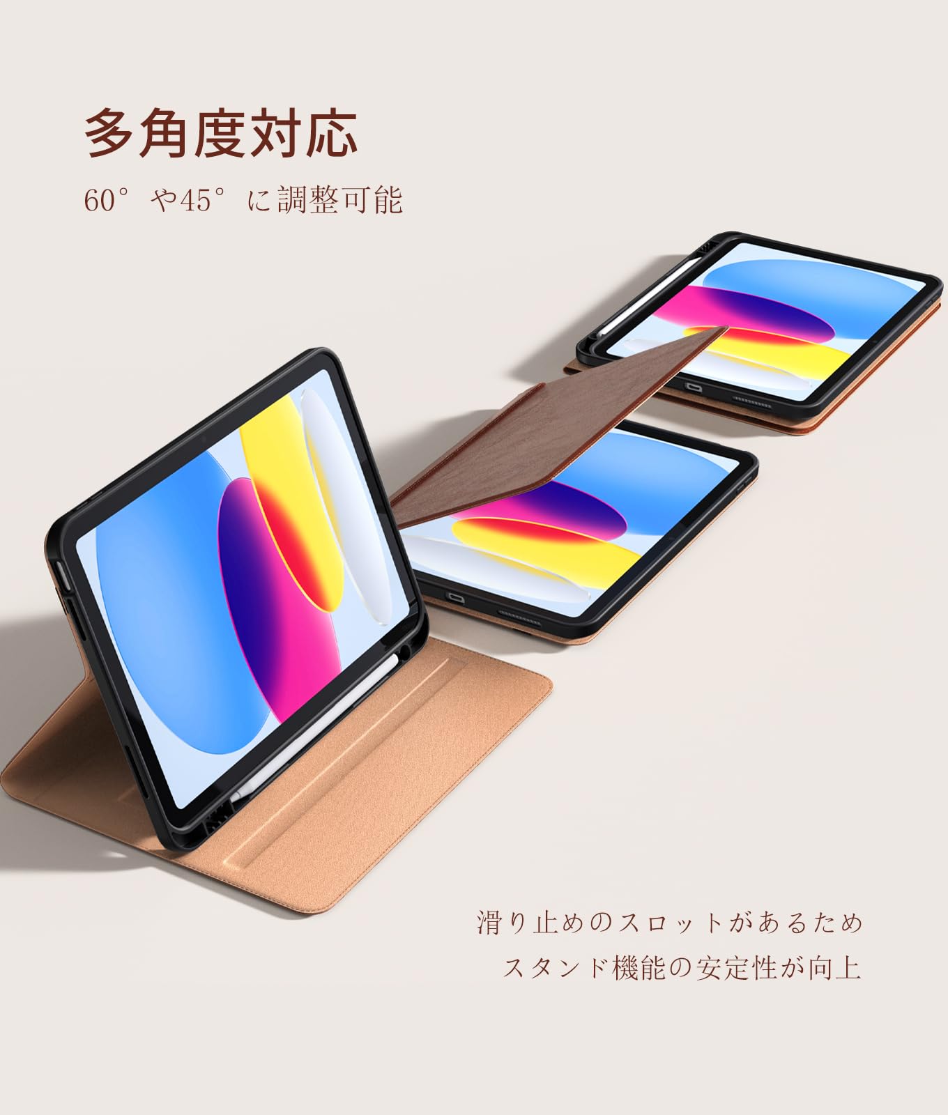 Maledan 対応iPad 10世代 ケース 二段階角度調節 ペンシル収納機能 PUレザー テレワーク用 オートスリープ/ウェイク機能 耐衝撃 手帳型