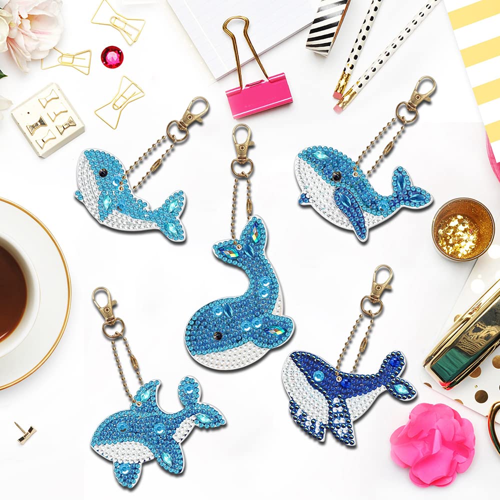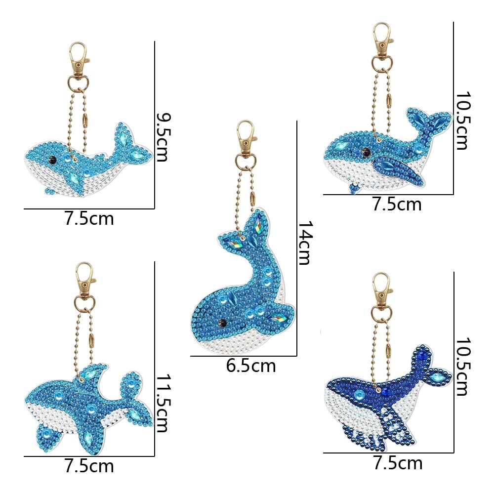 Mikankawa ダイヤモンドアート ペンダント キーホルダー 5個入り DIY 手工芸品 手作り ダイヤモンド塗装 かわいい 初心者でも楽しめる プレゼント (鯨)