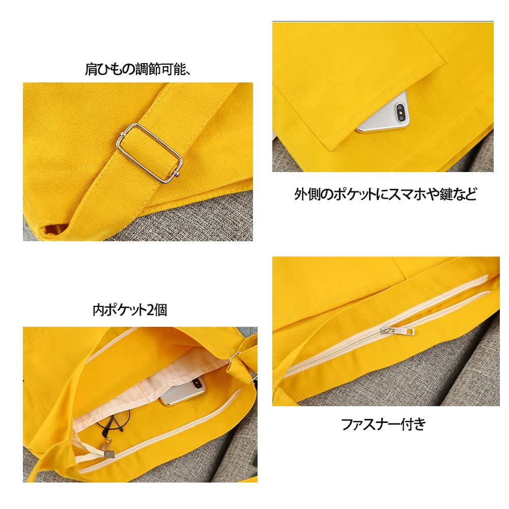 [Volsha] トートバック キャンバス A4 大容量 ショルダー トート キャンバス ショルダーバッグ 無地 キャンパストート帆布 男女兼用 旅行用 通勤通学