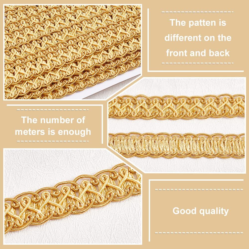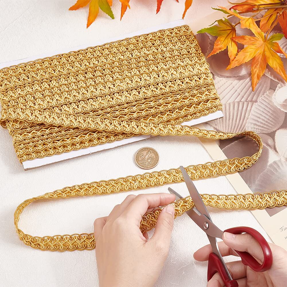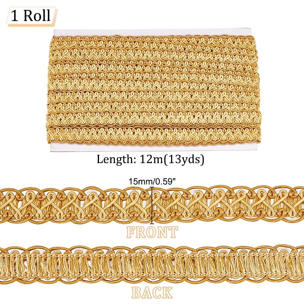 PH PandaHall 手芸ブレード DIY リボン 15mm幅 長さ12m トリムカーテン アクセサリー レースリボン 高級 飾り おしゃれ 華麗 DIY縫製 縫製装飾 手芸材料 cos服 カバン ソファー テーブルクロス カーテン 枕 帽子 装飾 ゴールド