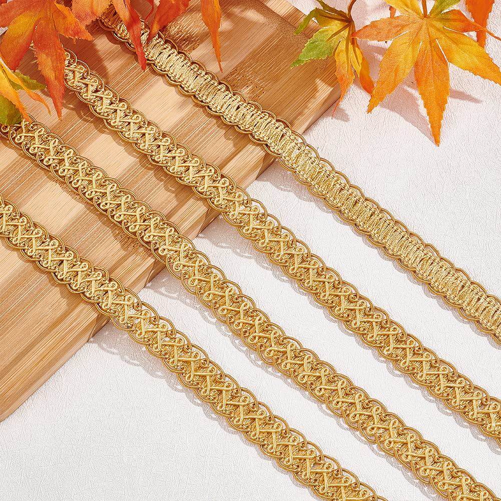 【数量限】PH PandaHall 手芸ブレード DIY リボン 15mm幅 長さ12m トリムカーテン アクセサリー レースリボン 高級 飾り おしゃれ 華麗 DIY縫製 縫製装飾 手芸材料 cos服 カバン ソファー テーブルクロス カーテン 枕 帽子 装飾 ゴールド | GIGATERA