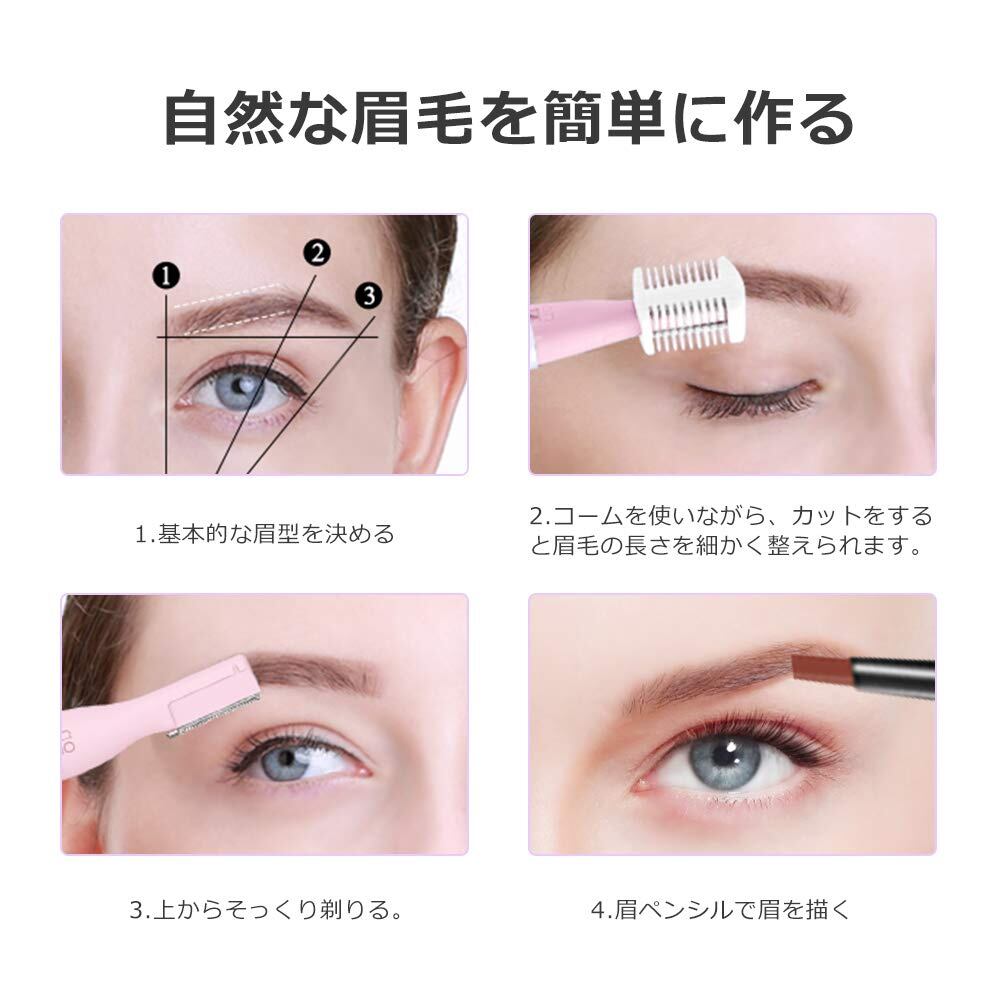 【高品質のステンレス鋼製&優れた切れ味】切れ味のよいステンレス鋼のブレードを採用した眉シェーバーです。眉コームが付属しているので、毛並みを整えたり長さを調節したりするときに便利。眉毛・足・腕・手・脇など、さまざまな部位に対応できるため、1台あれば全身をお手入れできます。