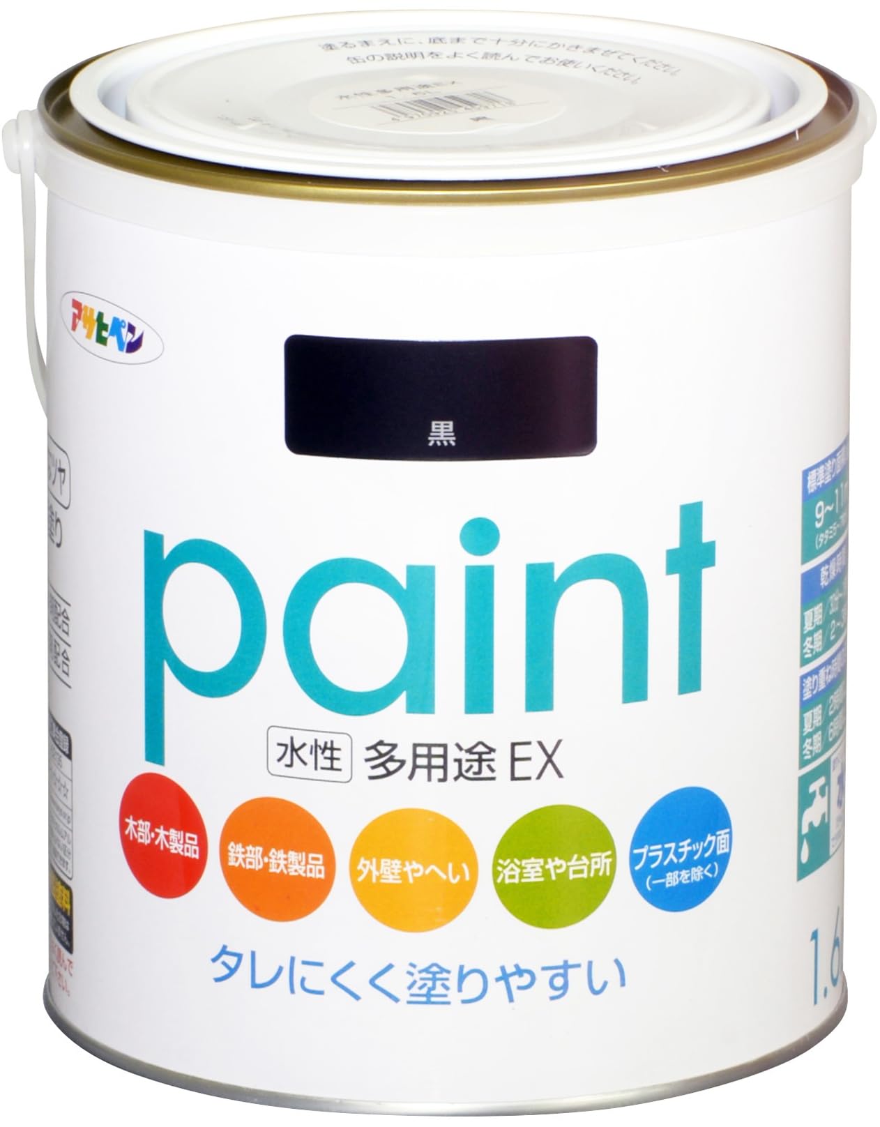 【在庫処分】アサヒペン 塗料 ペンキ 水性多用途EX 1.6L 黒 水性 多用途 半ツヤ ソフトなツヤ 低臭 防カビ サビドメ剤配合 タレにくく塗りやすい シックハウス対策品 日本製