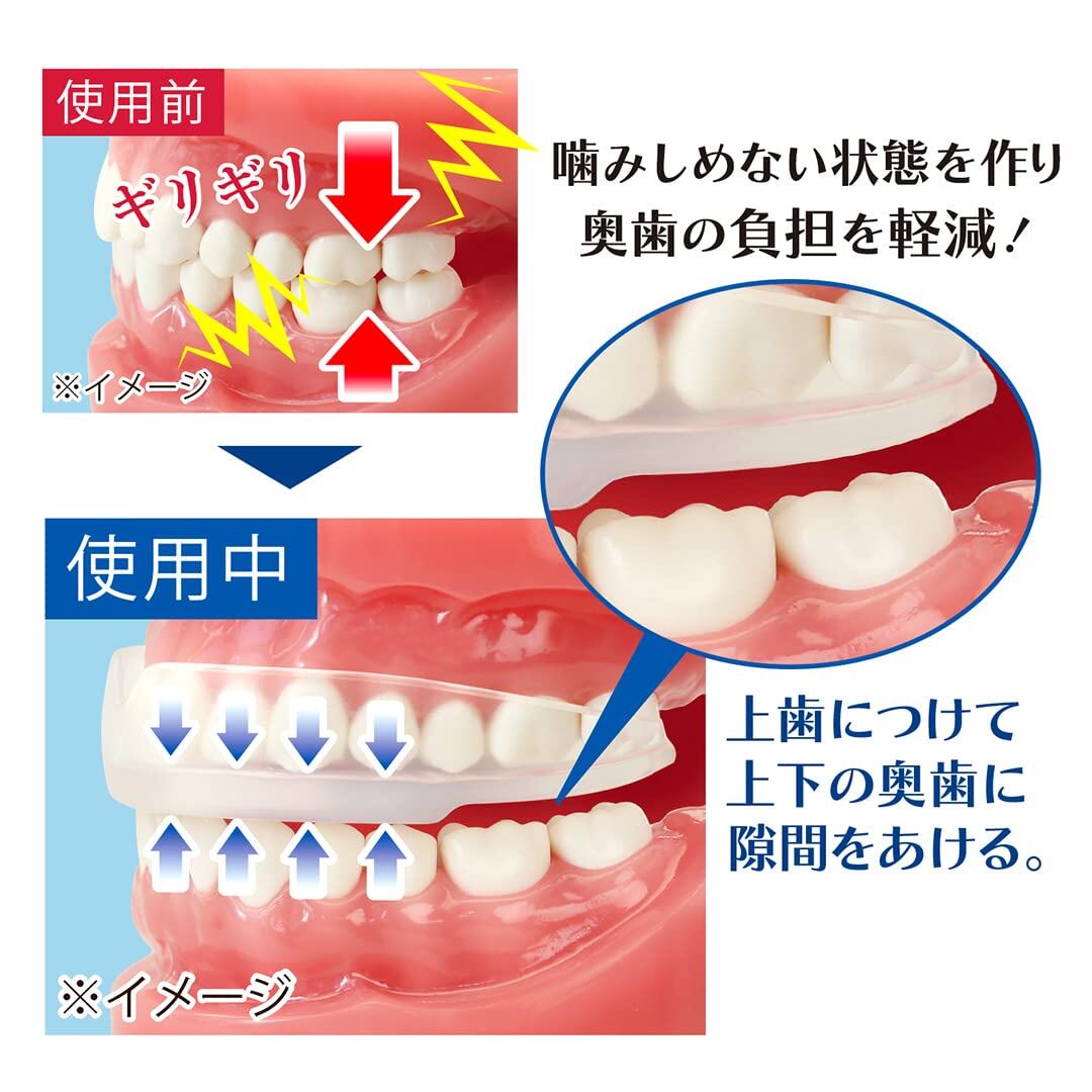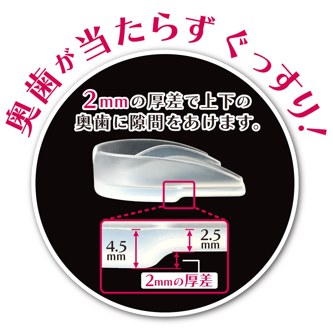 【食いしばり対策の形状】噛みしめる面に2mmの厚みの段差をつけた構造で、上下の奥歯にすき間を作ることで「食いしばり」を軽減させます。