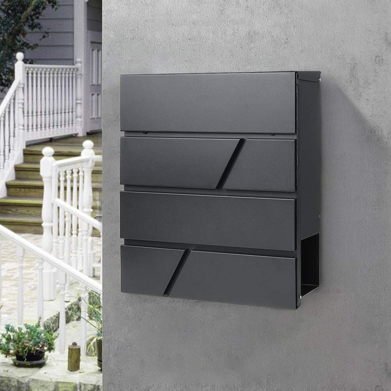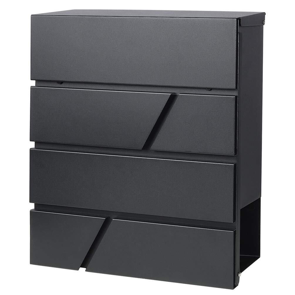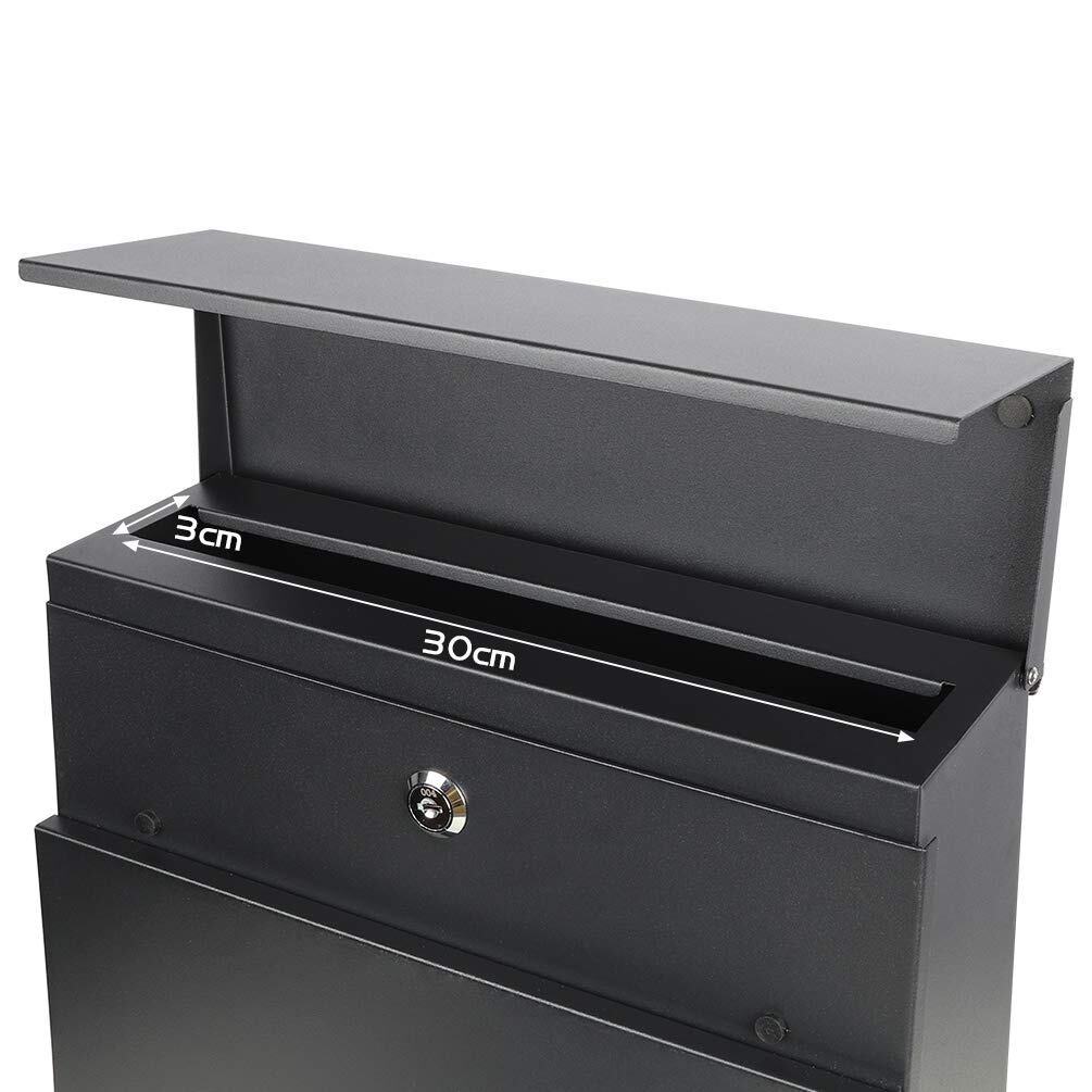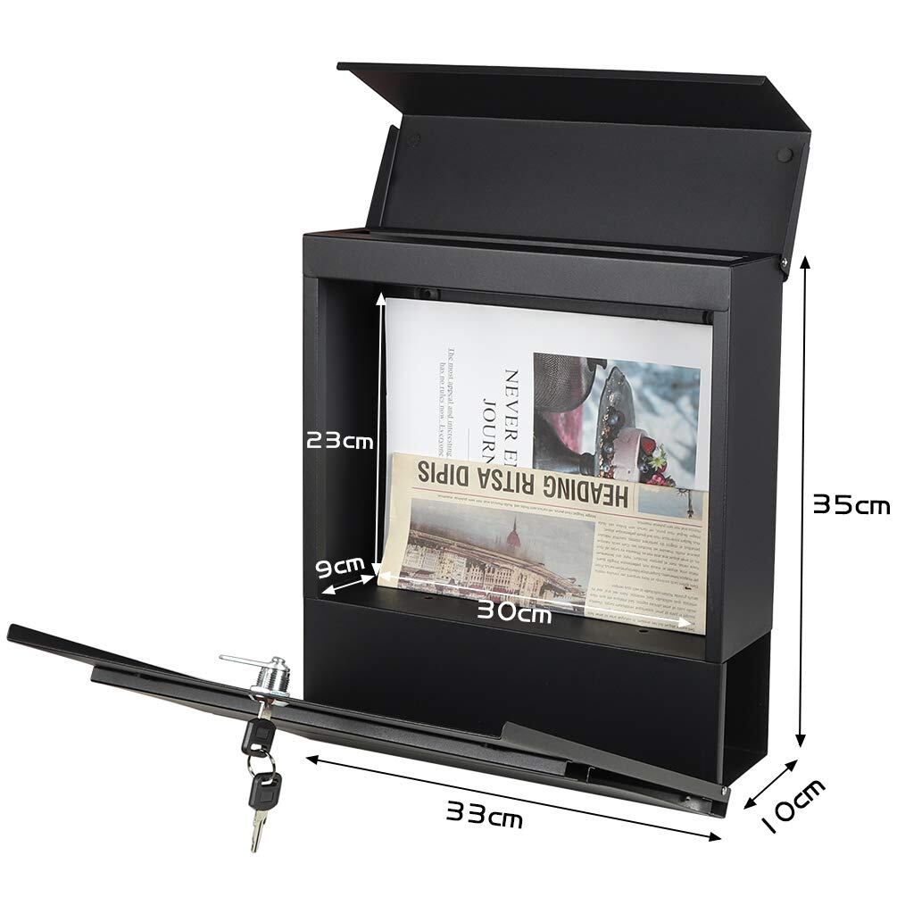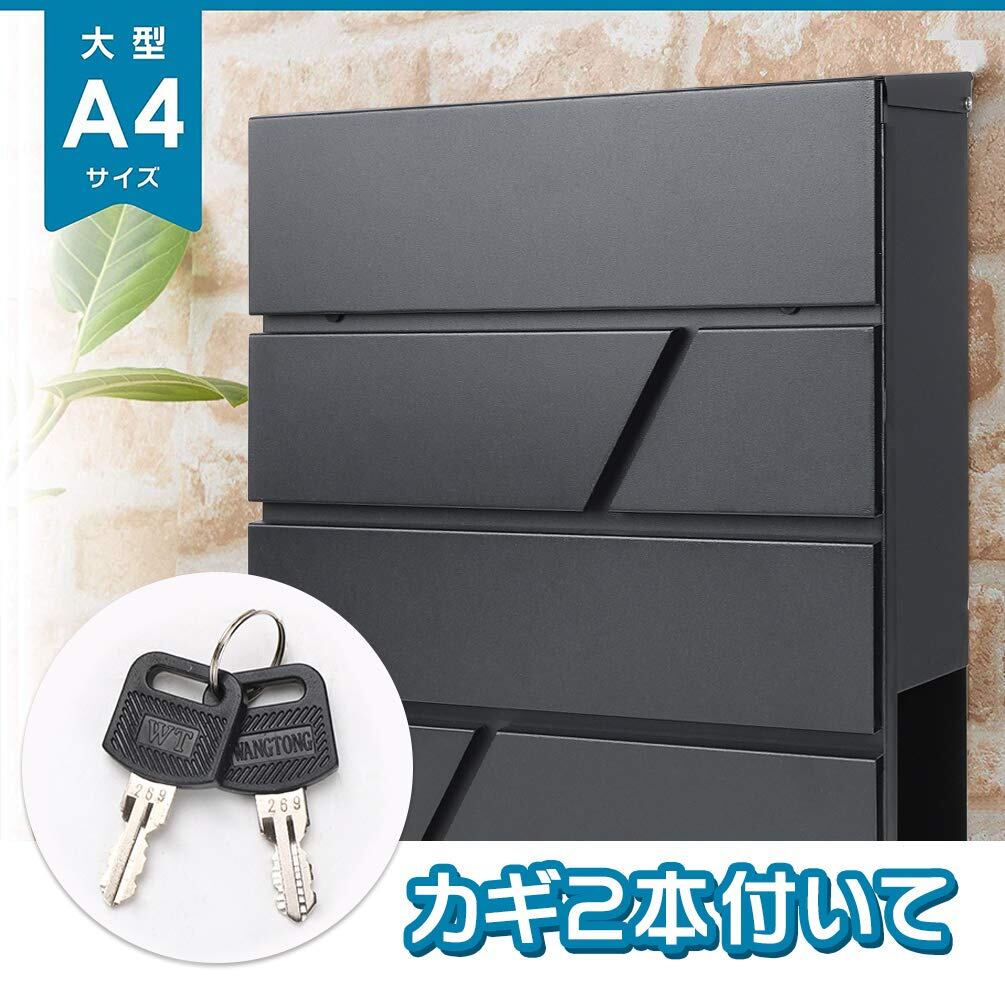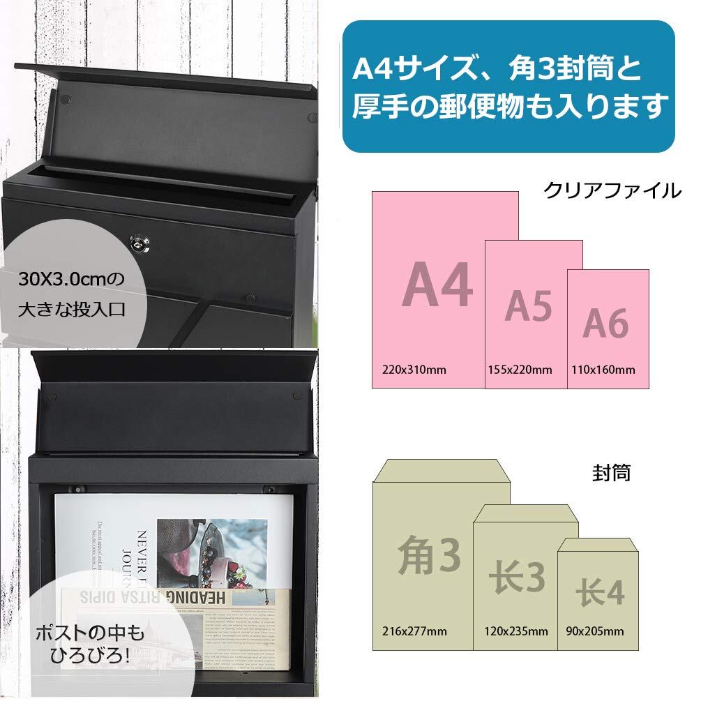 Jssmst(ジェスマット)メールボックス 郵便受け ポスト 大型 ファミリーポスト 郵便ポスト キーロック式 新聞受け ブラック 大容量 35*30*10cm(936-Black)