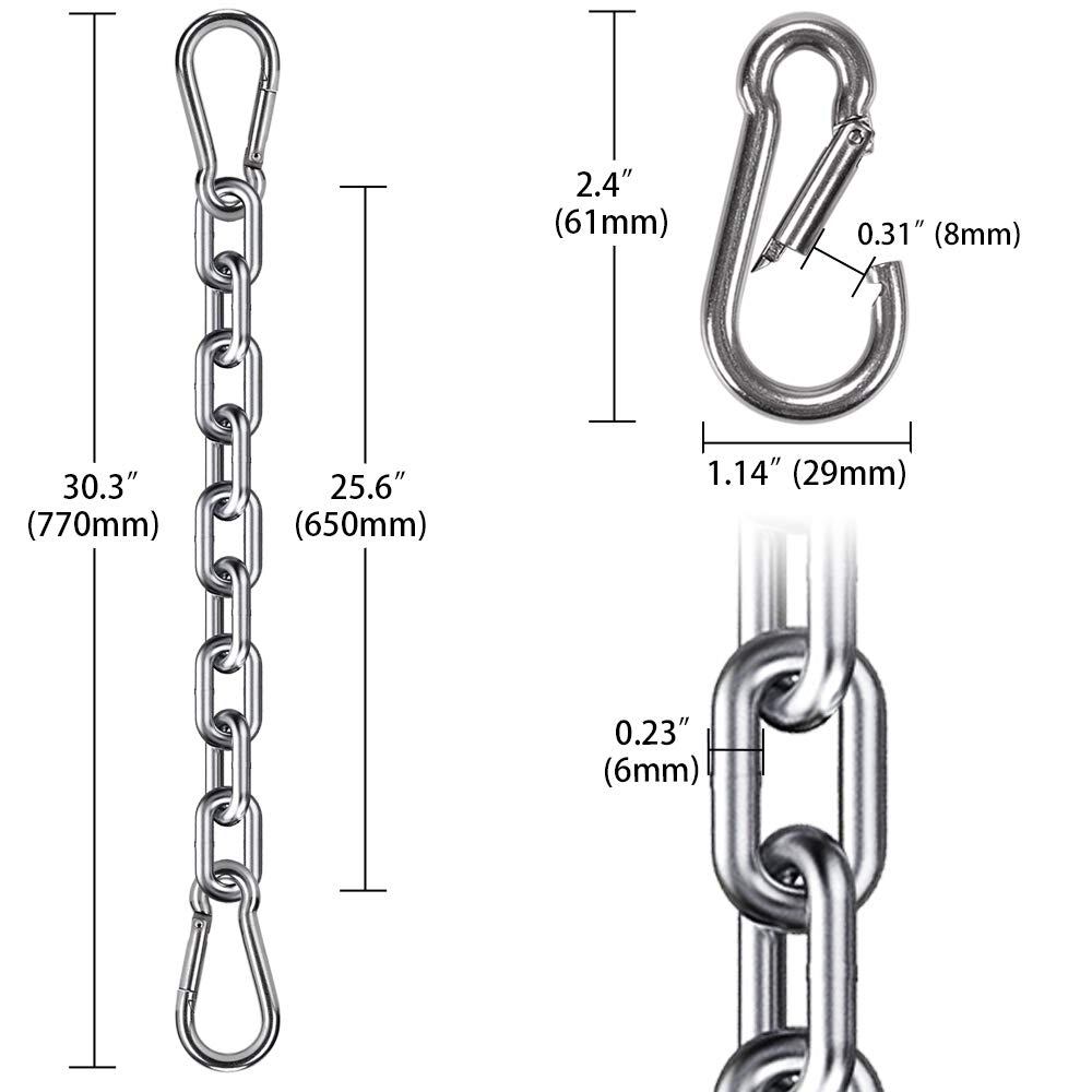 2個 ハンギングチェア鎖 と 4 スプリング フック304 ステンレス スチール ブランコハンモックチェア 鎖 サンドバッグ チェーン 屋内屋外遊び場 ブランコ 金具置換,耐荷重 450kg