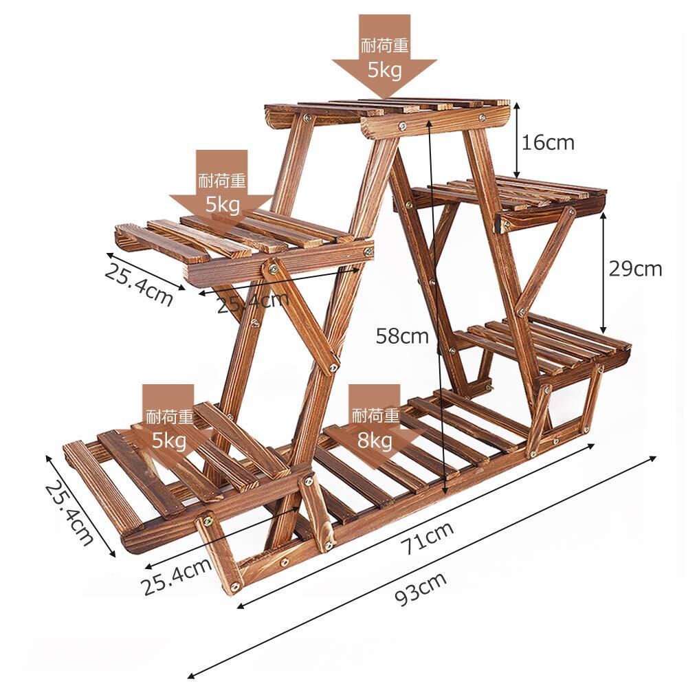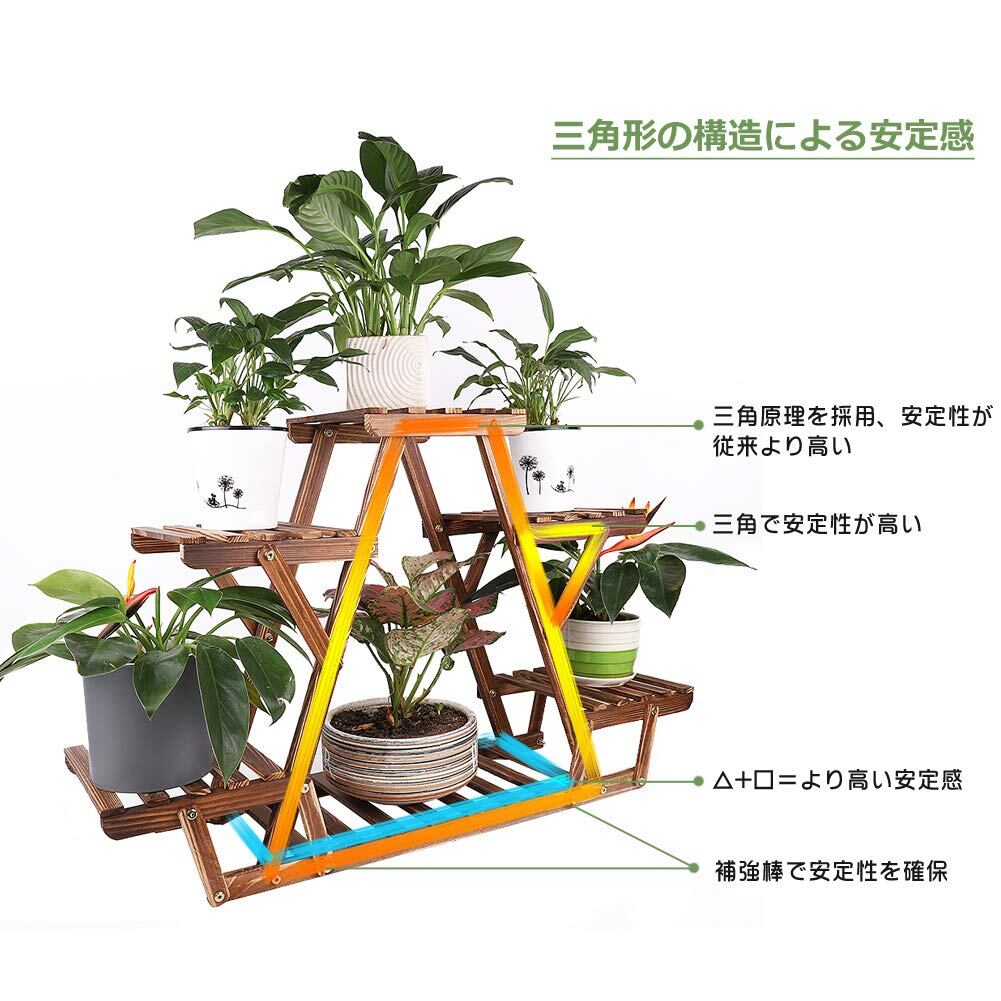 一番下の棚板の耐荷重が8kg、他の棚板1枚あたり5kgの重量に耐えられます。三角形の構造で、バランスがよく、重い鉢植を置いても安定しています