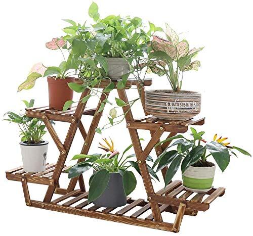 KRW フラワースタンド 木製 ガーデンラック 4段 ガーデニング 棚 高さ58cm プランター スタンド 花台 植木鉢 台 盆栽 園芸 ラック 屋外/室内 木目