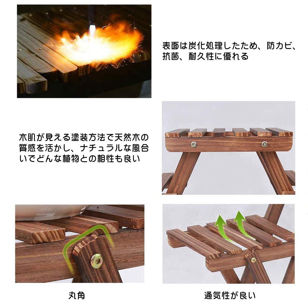 【セール】KRW フラワースタンド 木製 ガーデンラック 4段 ガーデニング 棚 高さ58cm プランター スタンド 花台 植木鉢 台 盆栽 園芸 ラック 屋外/室内 木目