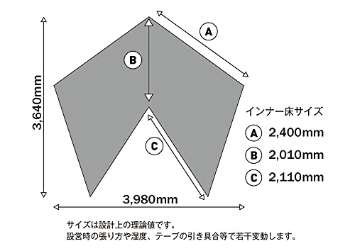 ■サイズ(約):インナーテント/398×364× (H)280cm ■重量(約):インナーテント/3.1kg グランドシート/1.04kg
